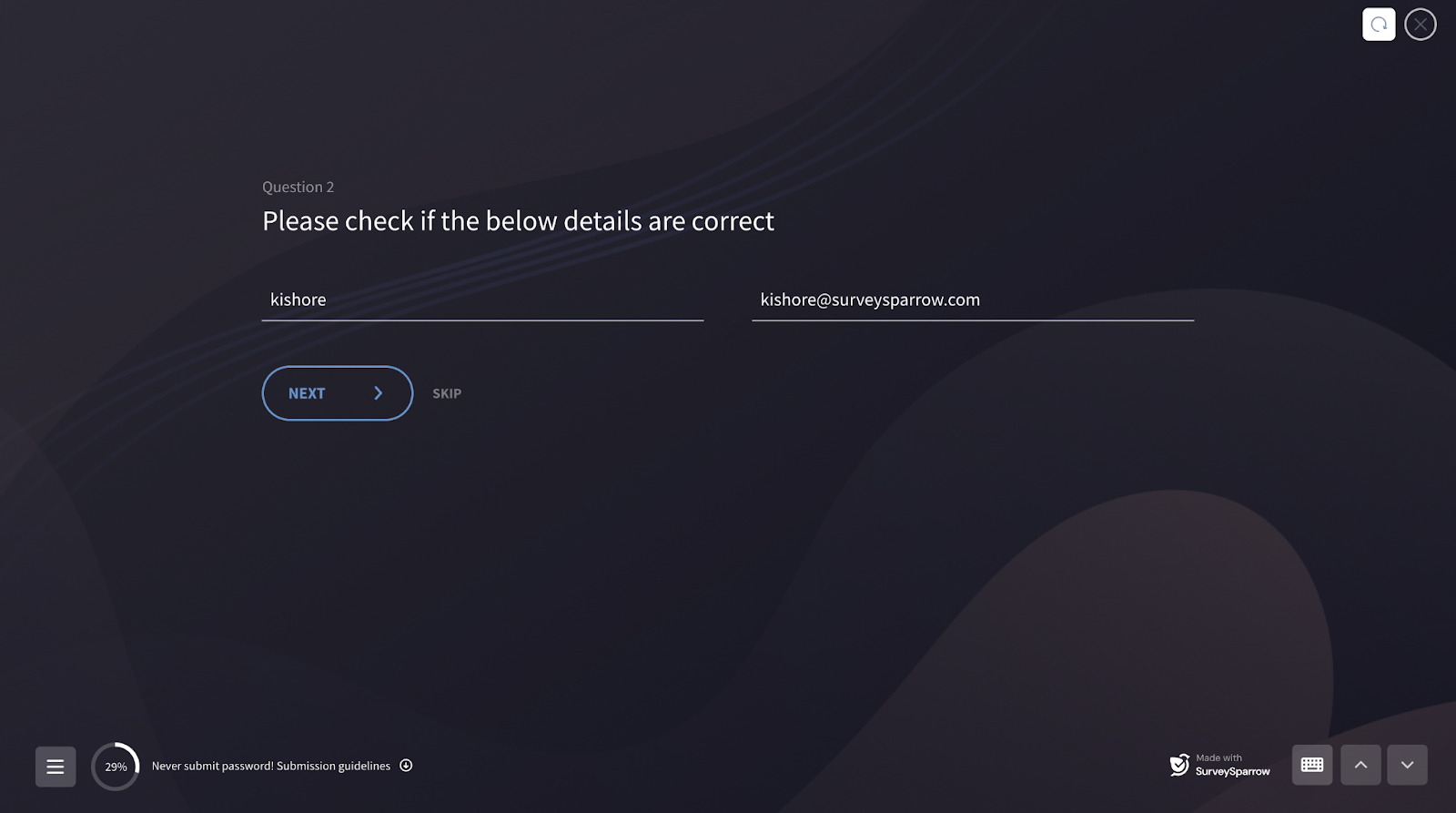 For this example, let's focus on prefilling the name and email address fields. Once you've shared the survey via email, the result will be similar to the image below: