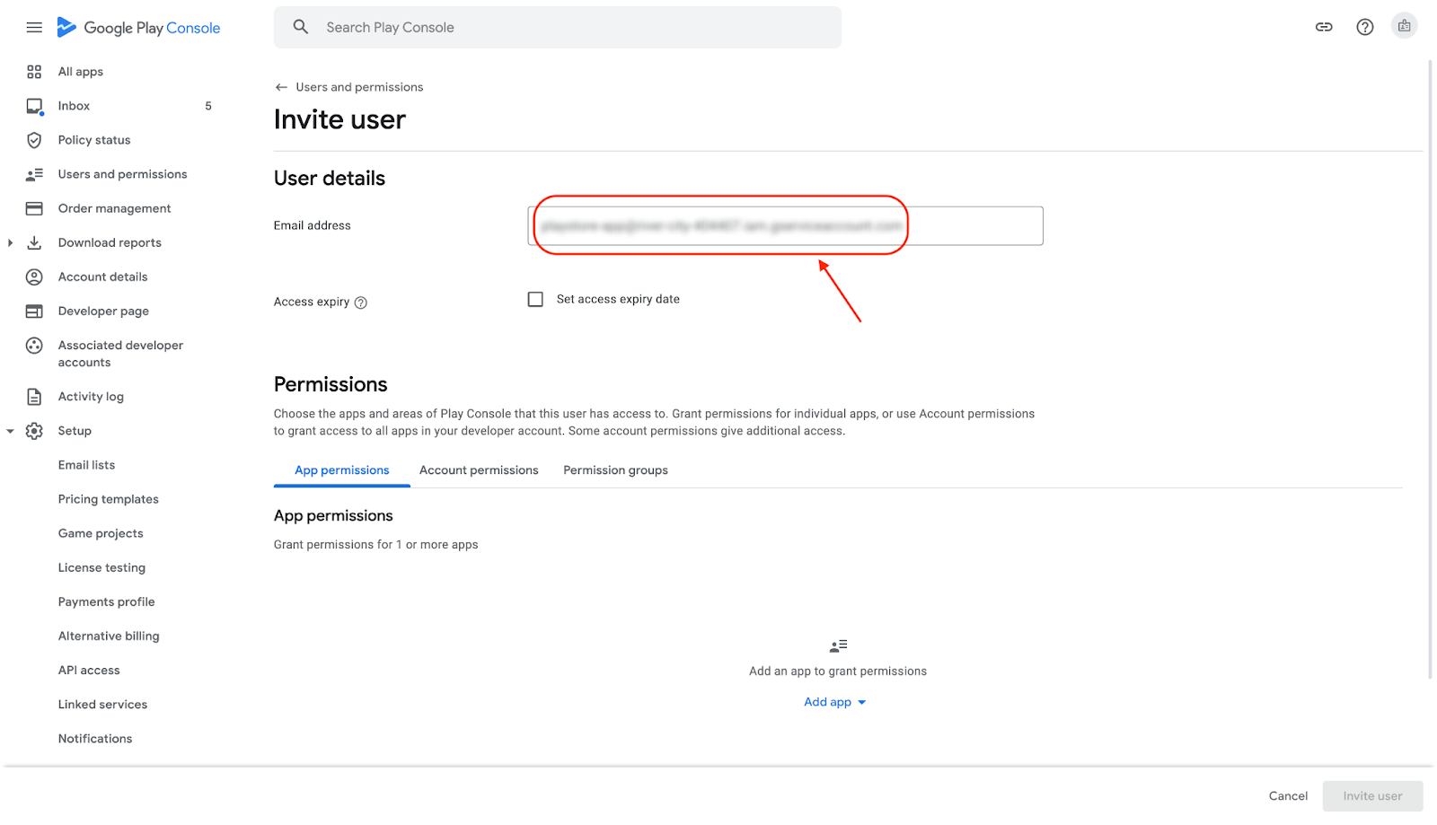 Note down your service account’s email and reach out to your Google Play Console Admin to add it as a user.