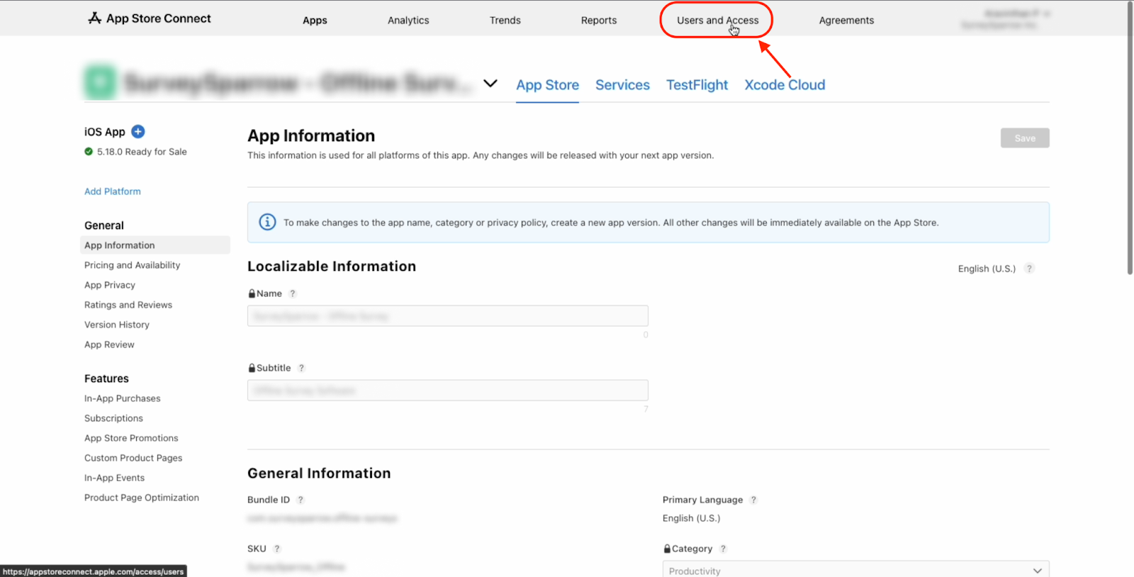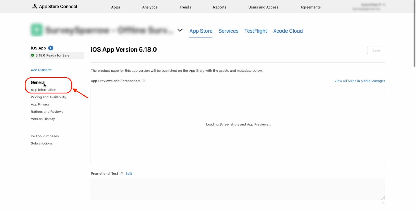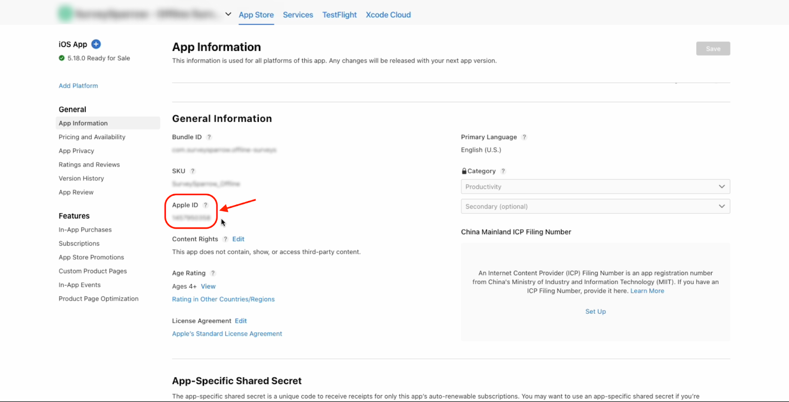 5. Under General Information, you can find your app’s Apple ID. Copy the ID and have it ready to connect your App’s reviews to SurveySparrow’s Reputation Management.