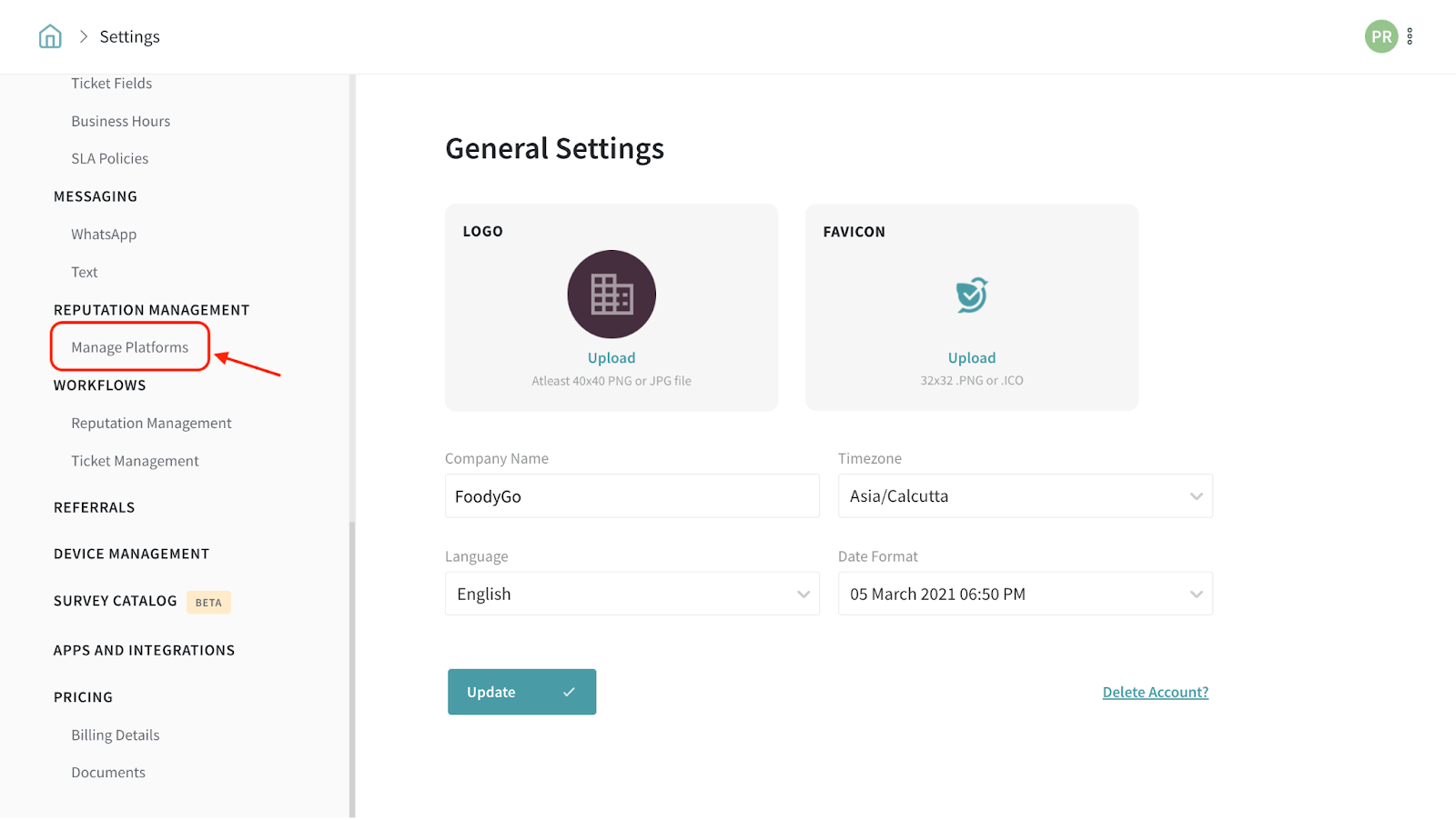 1. Log in to your SurveySparrow account and navigate to the account’s settings.