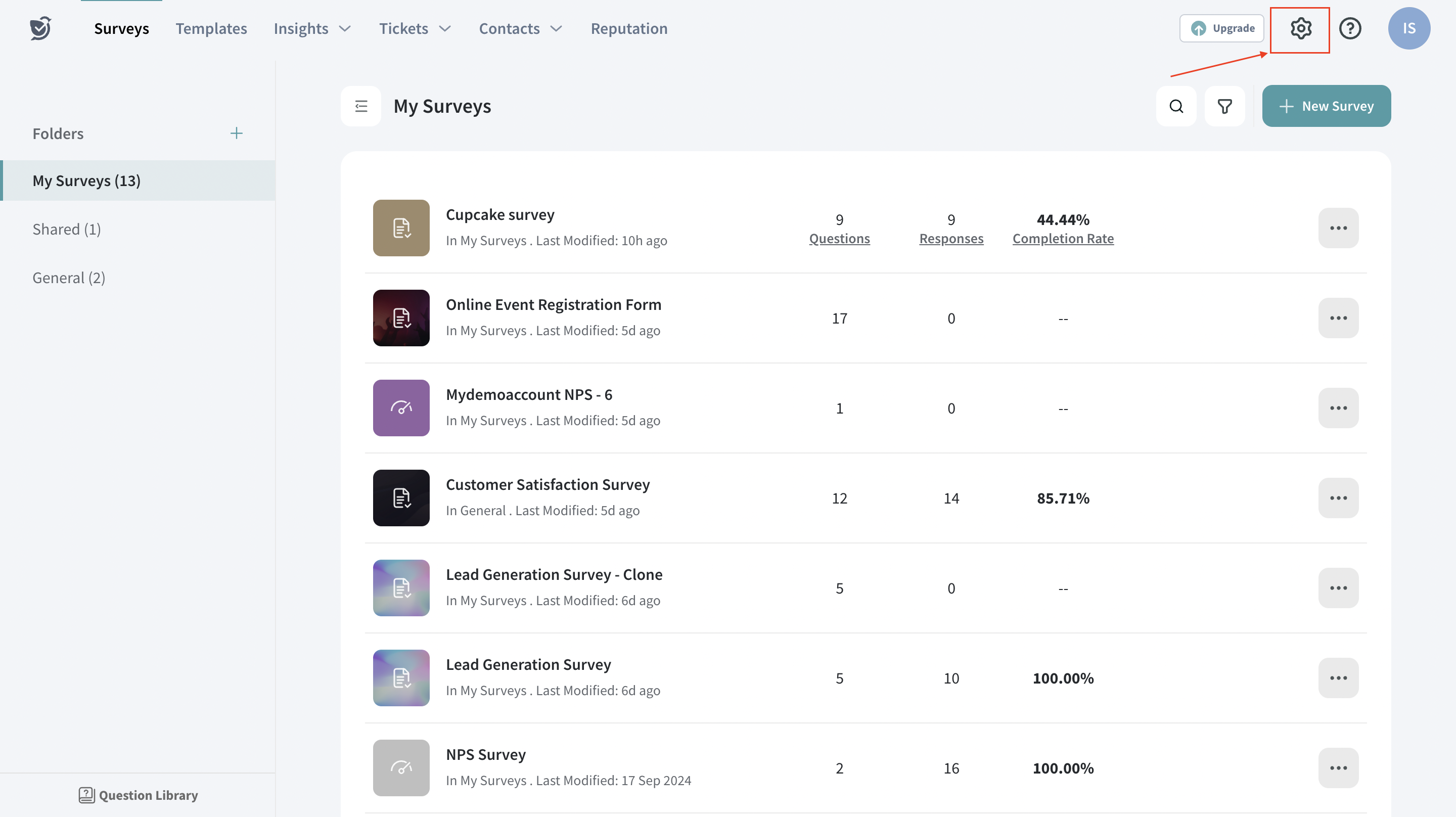 1. Log in to your SurveySparrow account and navigate to the account’s settings.
