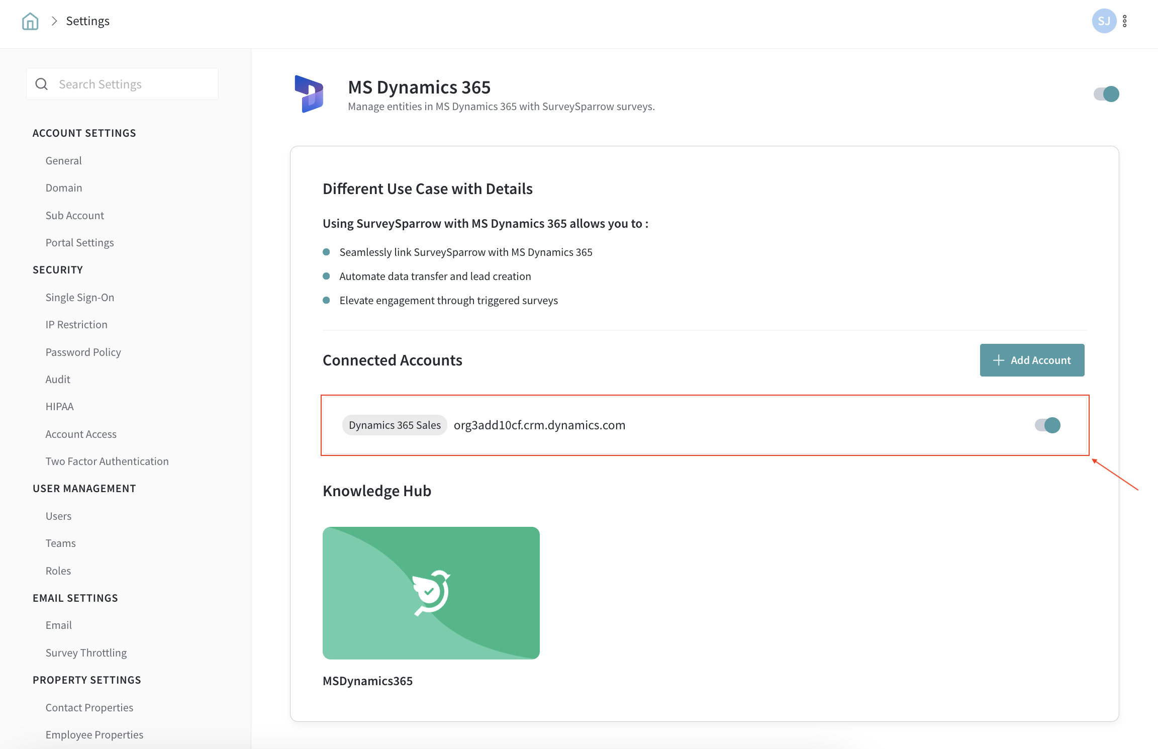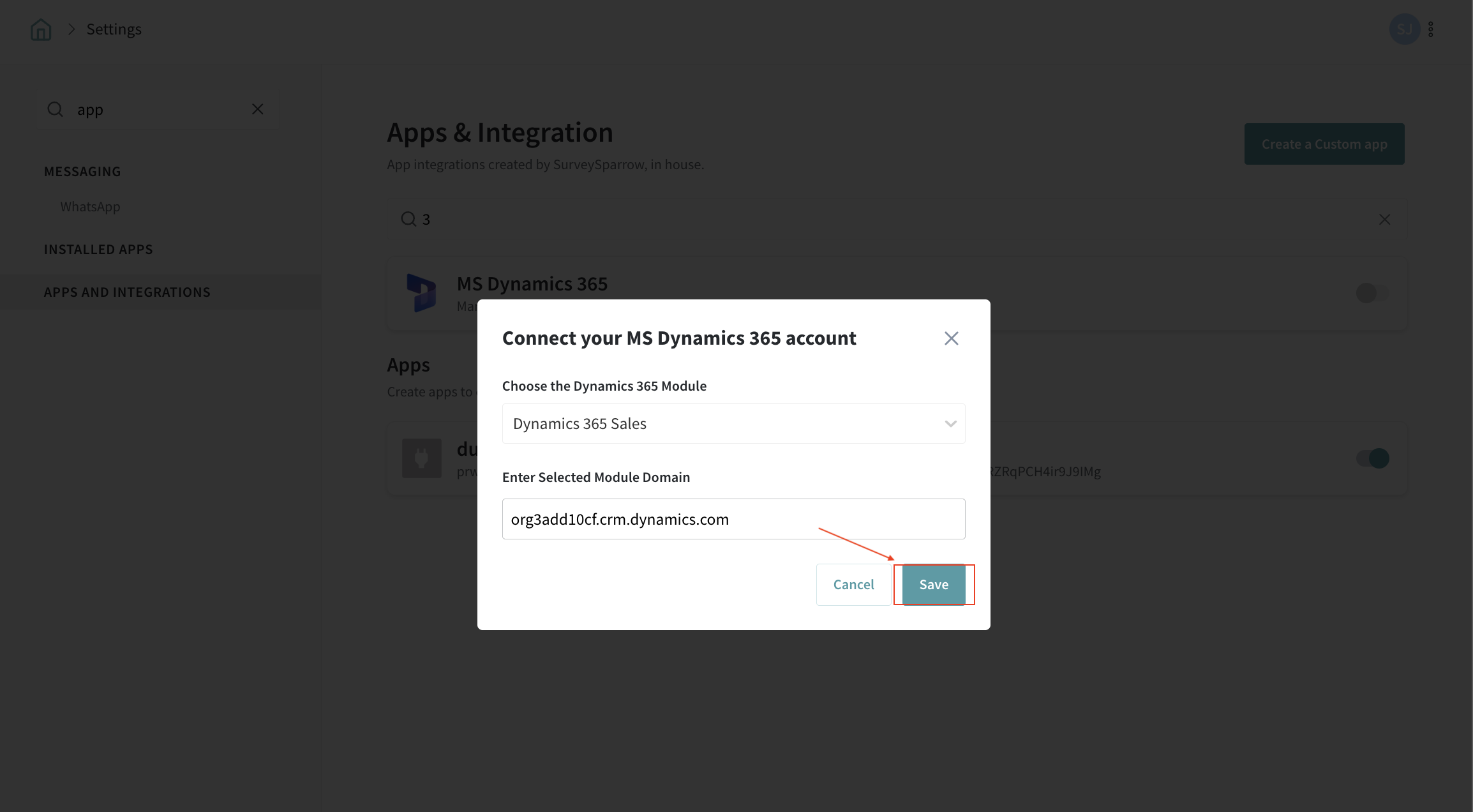That’s it! Your MS Dynamics 365 module is now connected to your SurveySparrow account.
