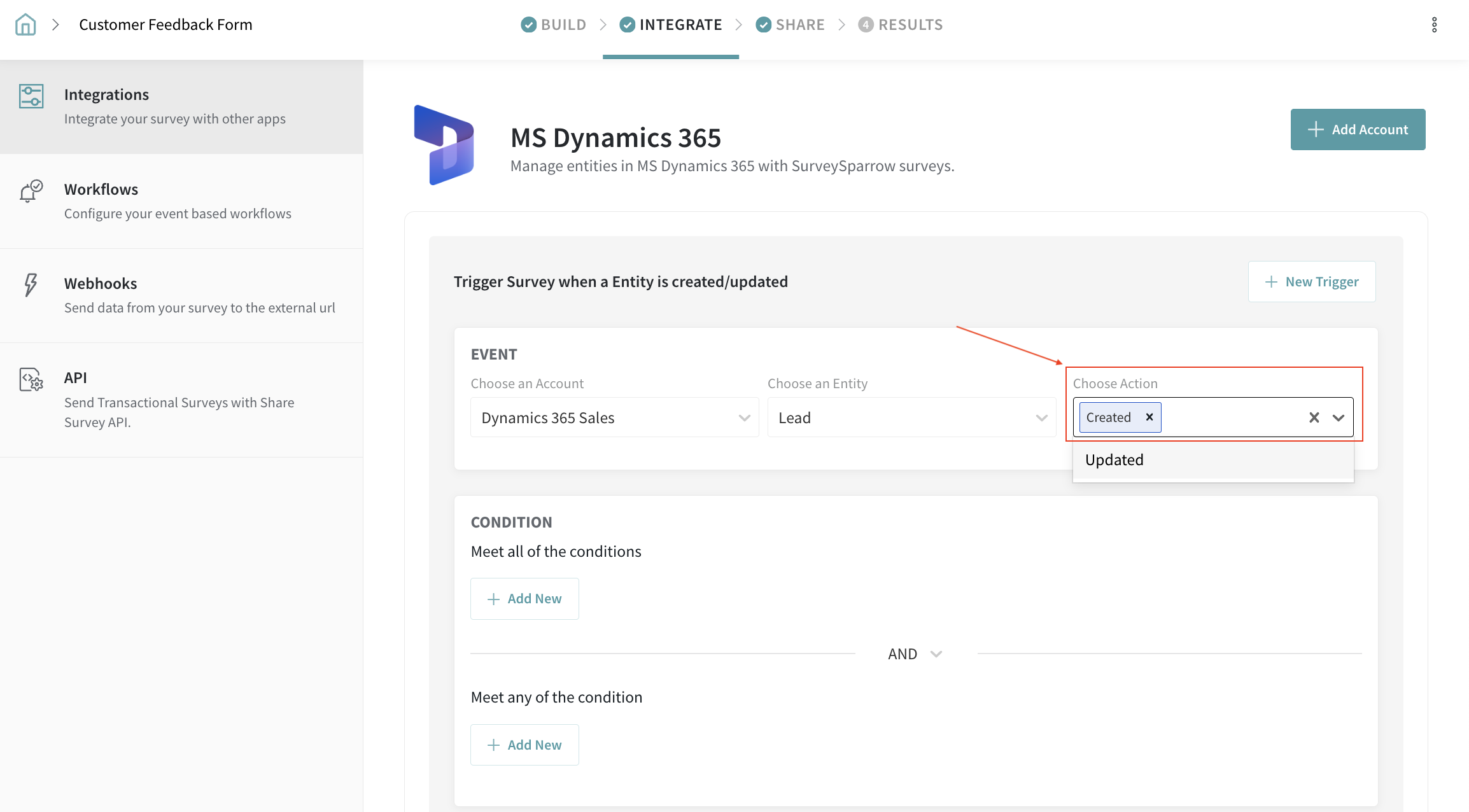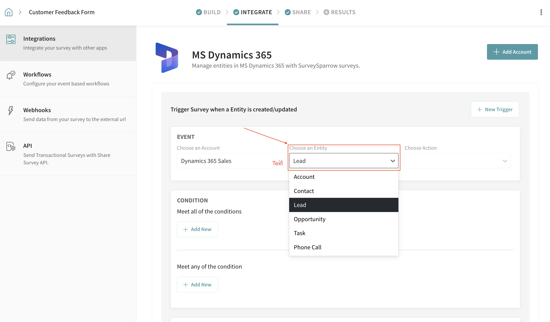 Now, let’s see how to connect your MS Dynamics 365 account with SurveySparrow and explore the integration’s capabilities.