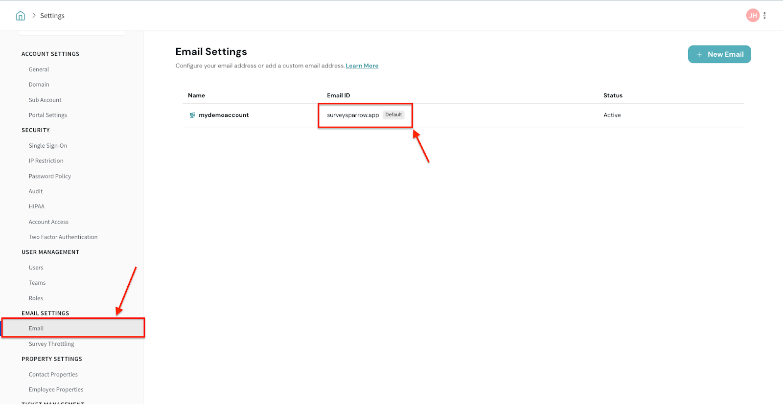A trustworthy email address is a necessity for better email deliverability. SurveySparrow assists businesses with default email domains for sending surveys, getting response notifications, and internal communications. In this pursuit, a dedicated domain is allocated for each customer.