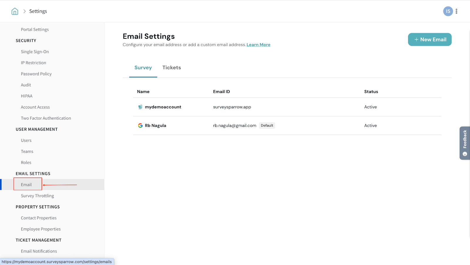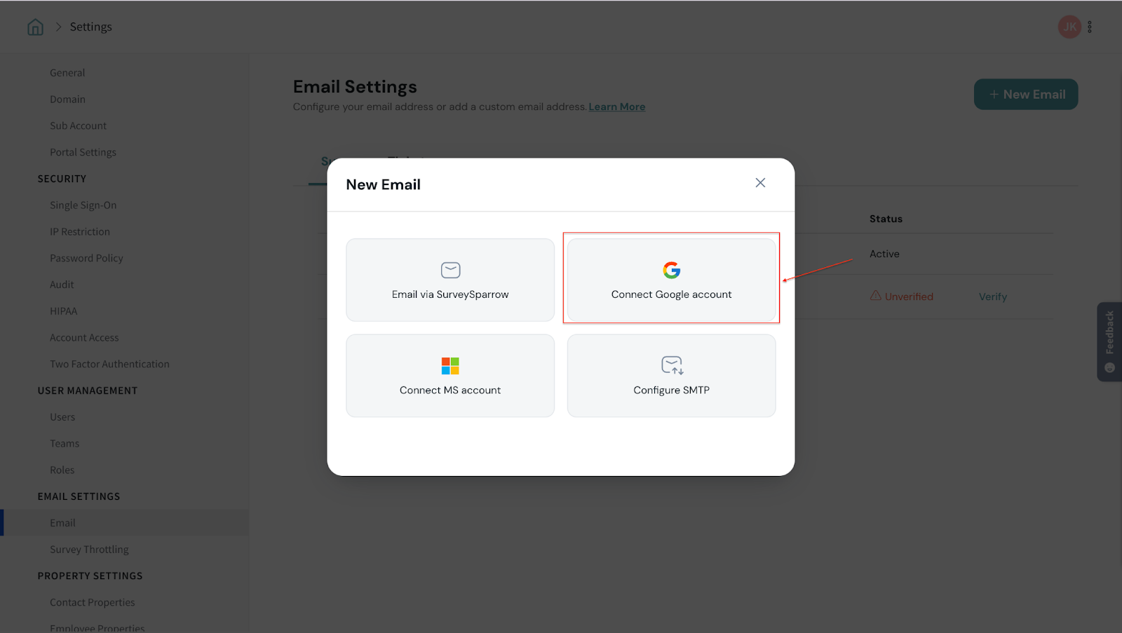 Now, let’s look at how to set up Google SMTP for your SurveySparrow account.