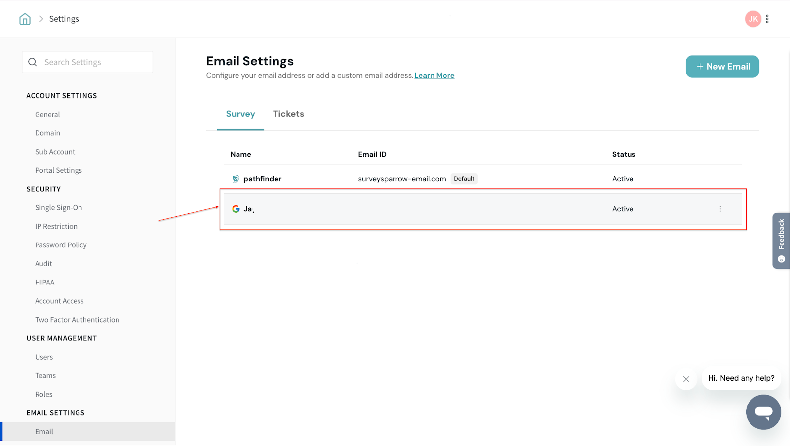 Once done, your emails from SurveySparrow will be triggered from the configured Google SMTP.