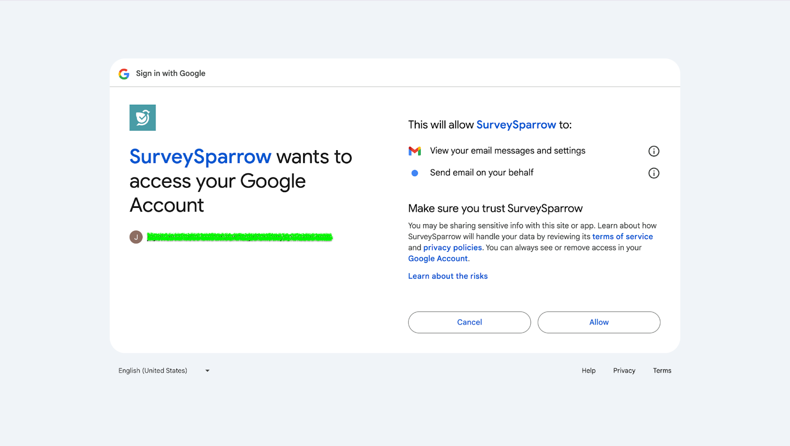 6. Enable the option for SurveySparrow to access your Gmail and continue.