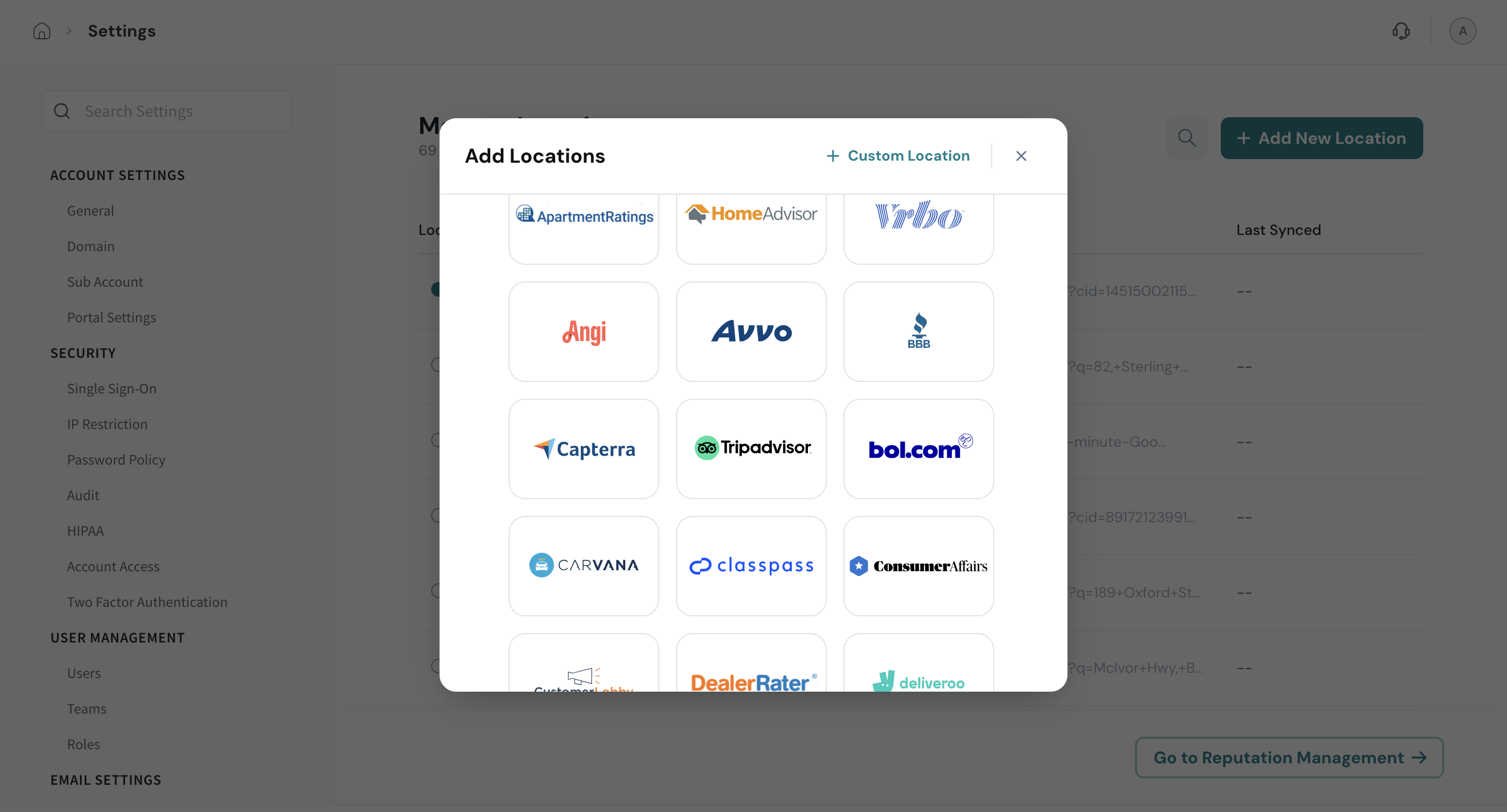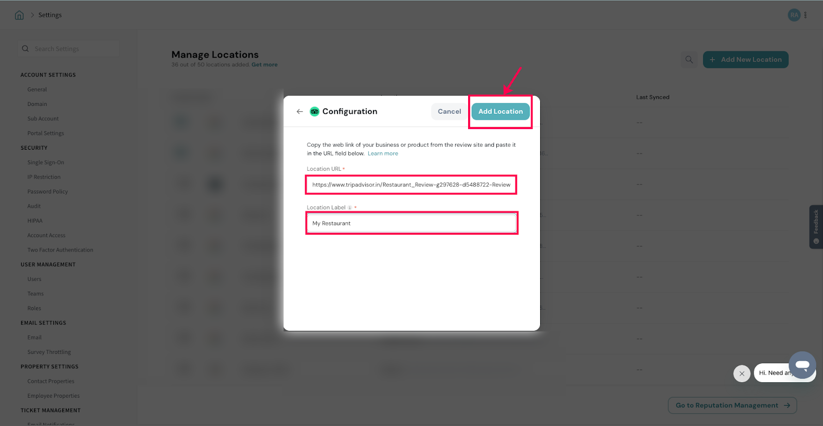 While adding the platform for Reputation Management, enter the copied link in the URL field.