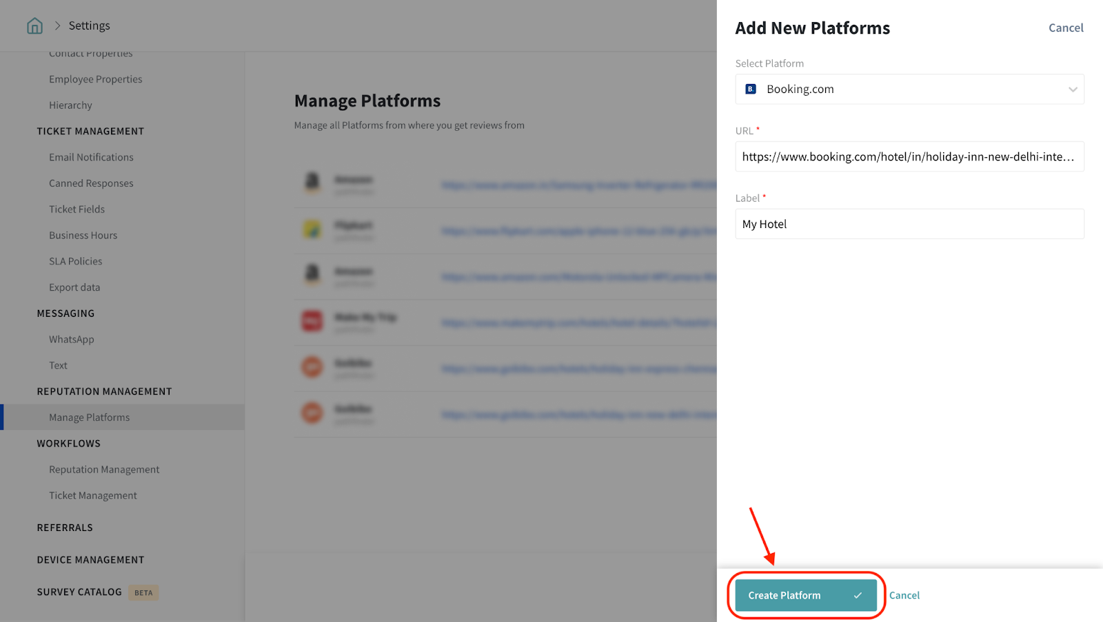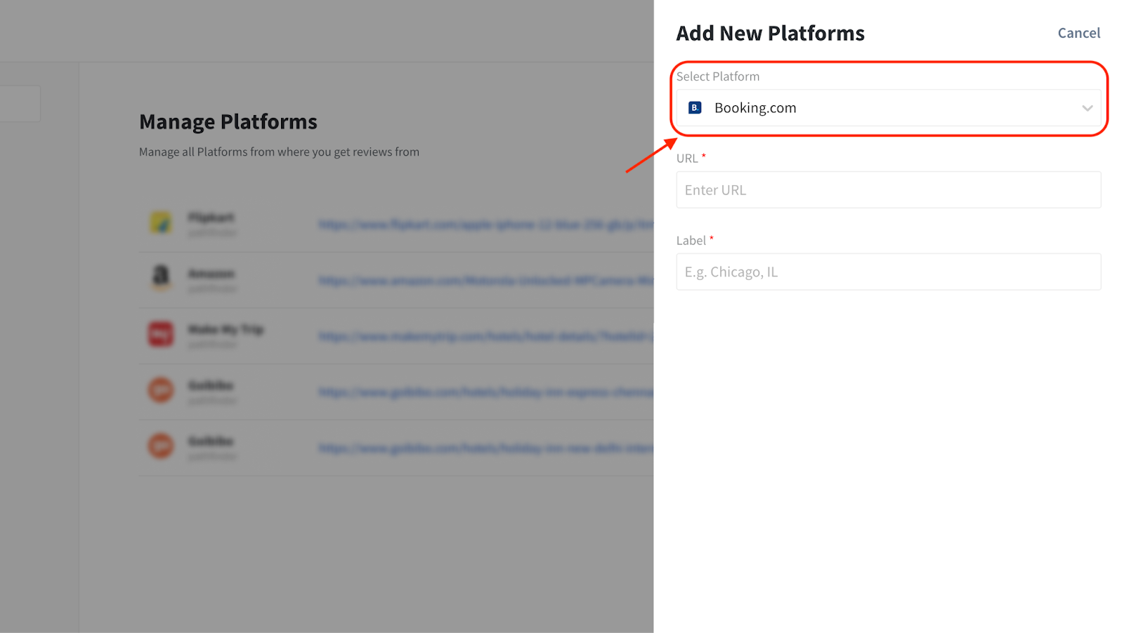 While adding the platform for Reputation Management, enter the copied link in the URL field.