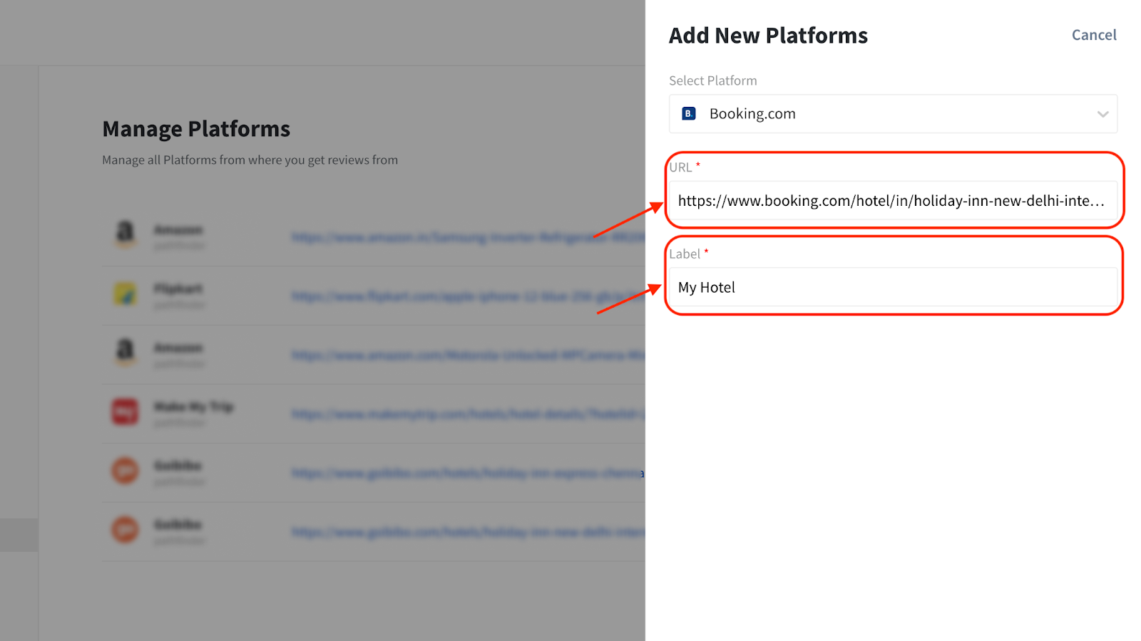 6. Enter your Booking.com listing’s URL and provide a name for your reference.