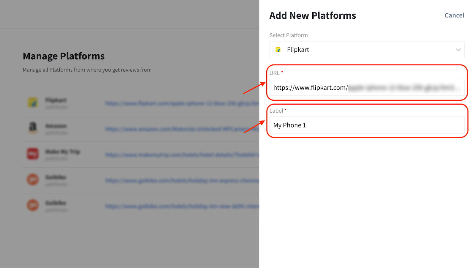 6. Enter your Flipkart listing’s URL and provide a name for your reference.