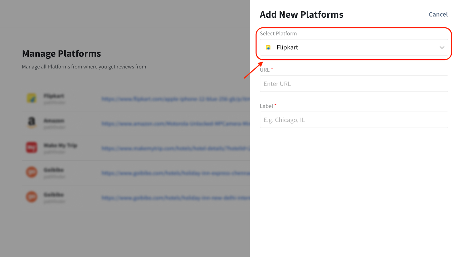 While adding the platform for Reputation Management, enter the copied link in the URL field.