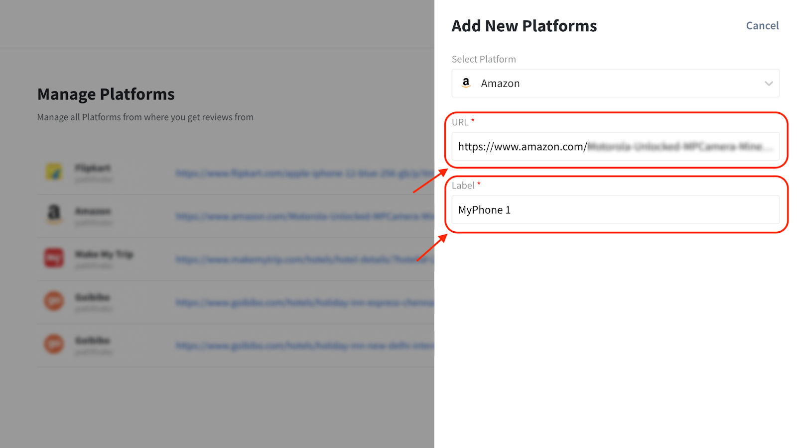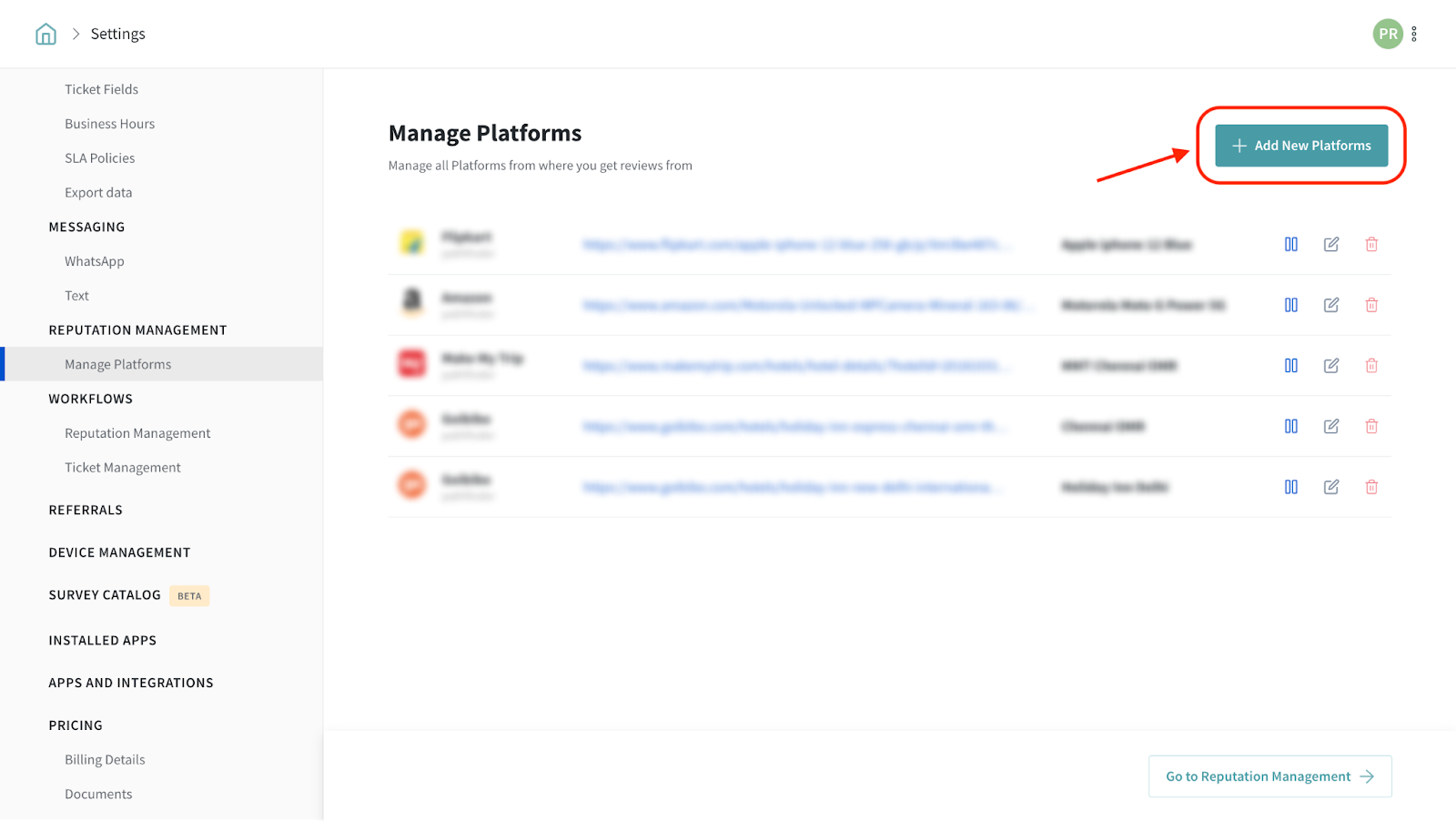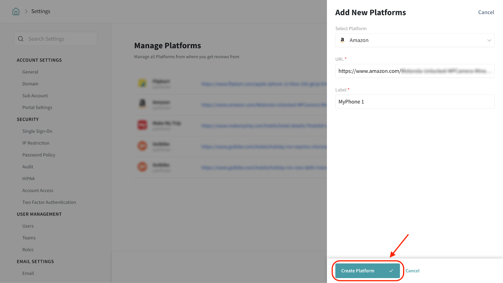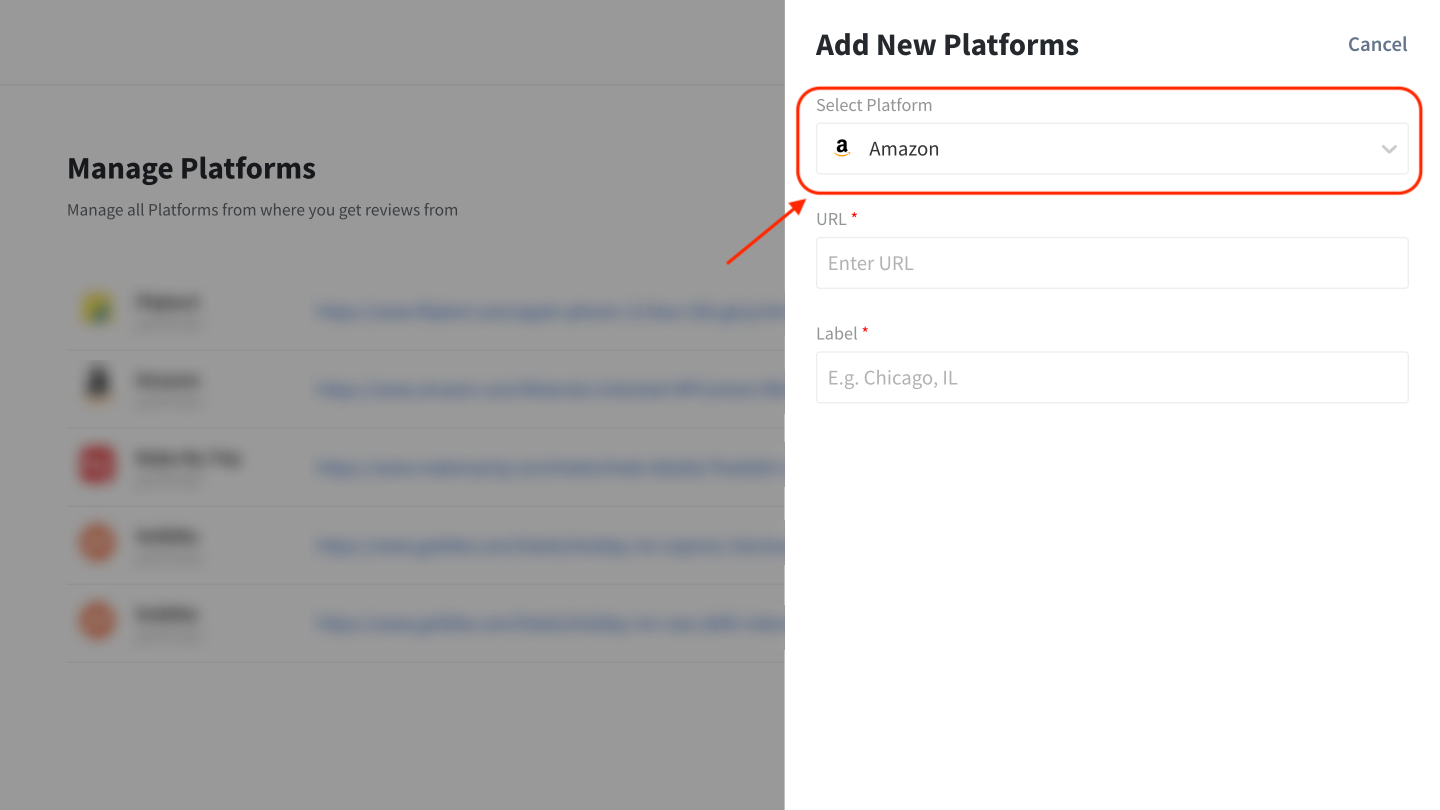 While adding the review platform for Reputation Management, enter the copied link in the URL field.