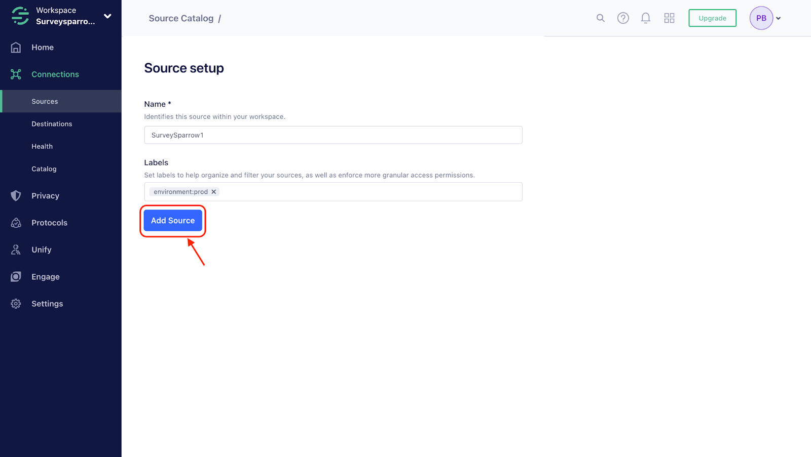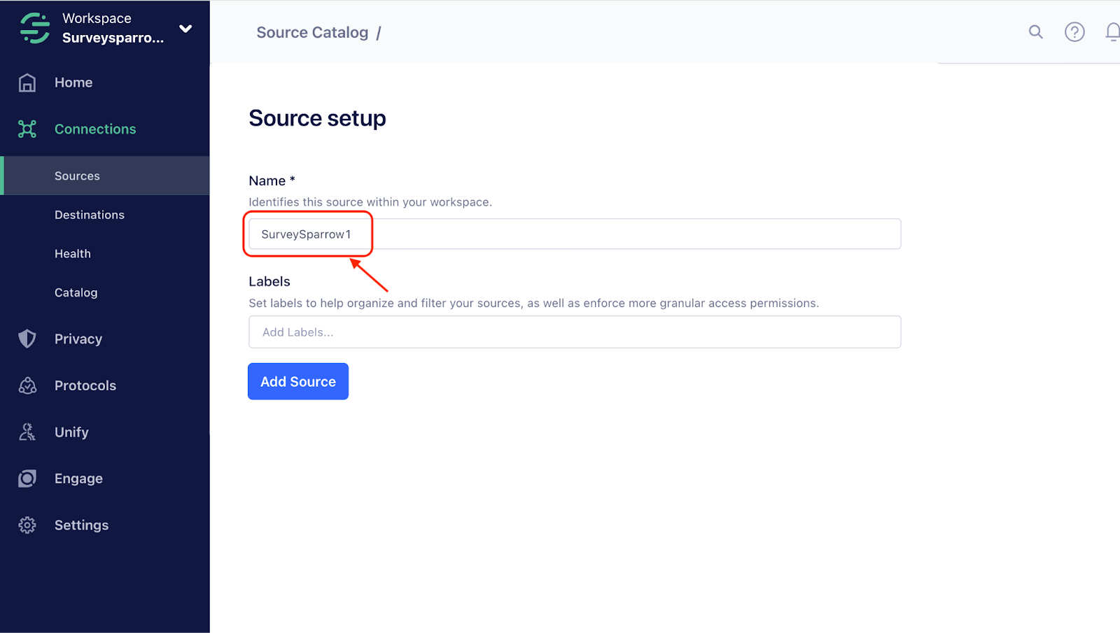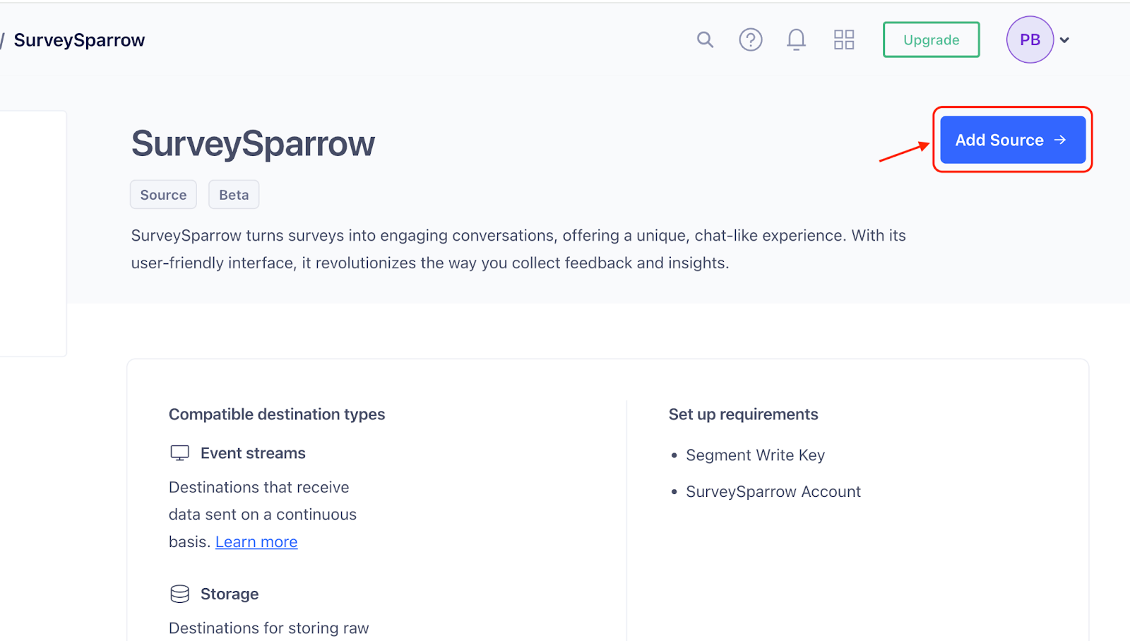 On every response submission, the data will be sent to the configured Segment Destination. Now, let’s see how to set up SurveySparrow as a Segment Source.