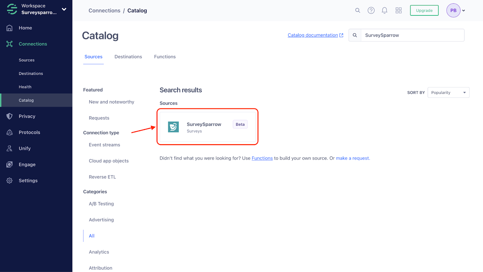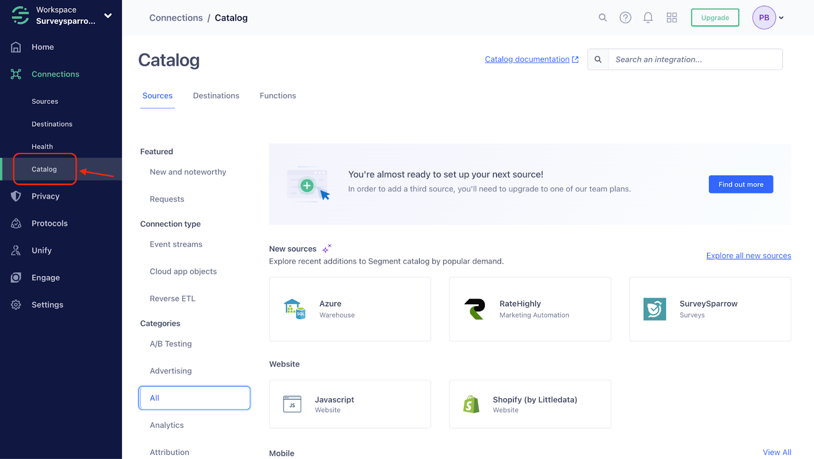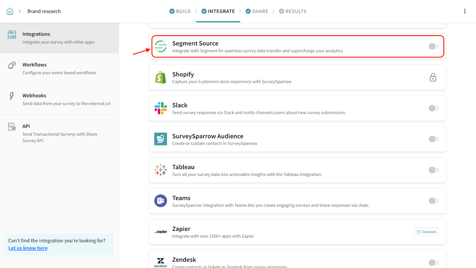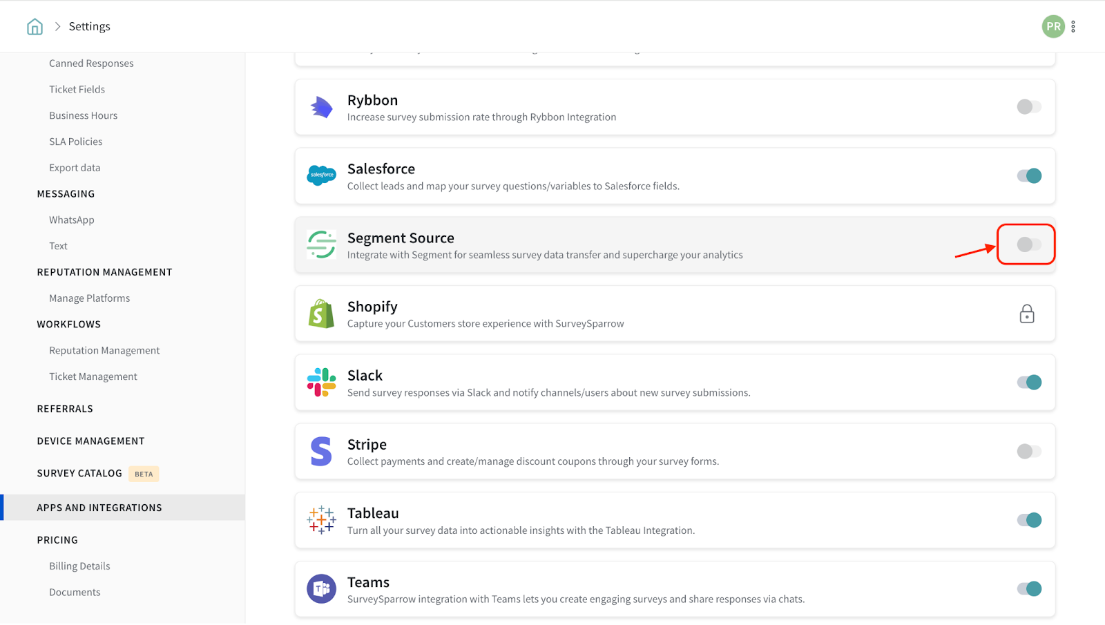 On every response submission, the data will be sent to the configured Segment Destination. Now, let’s see how to set up SurveySparrow as a Segment Source.