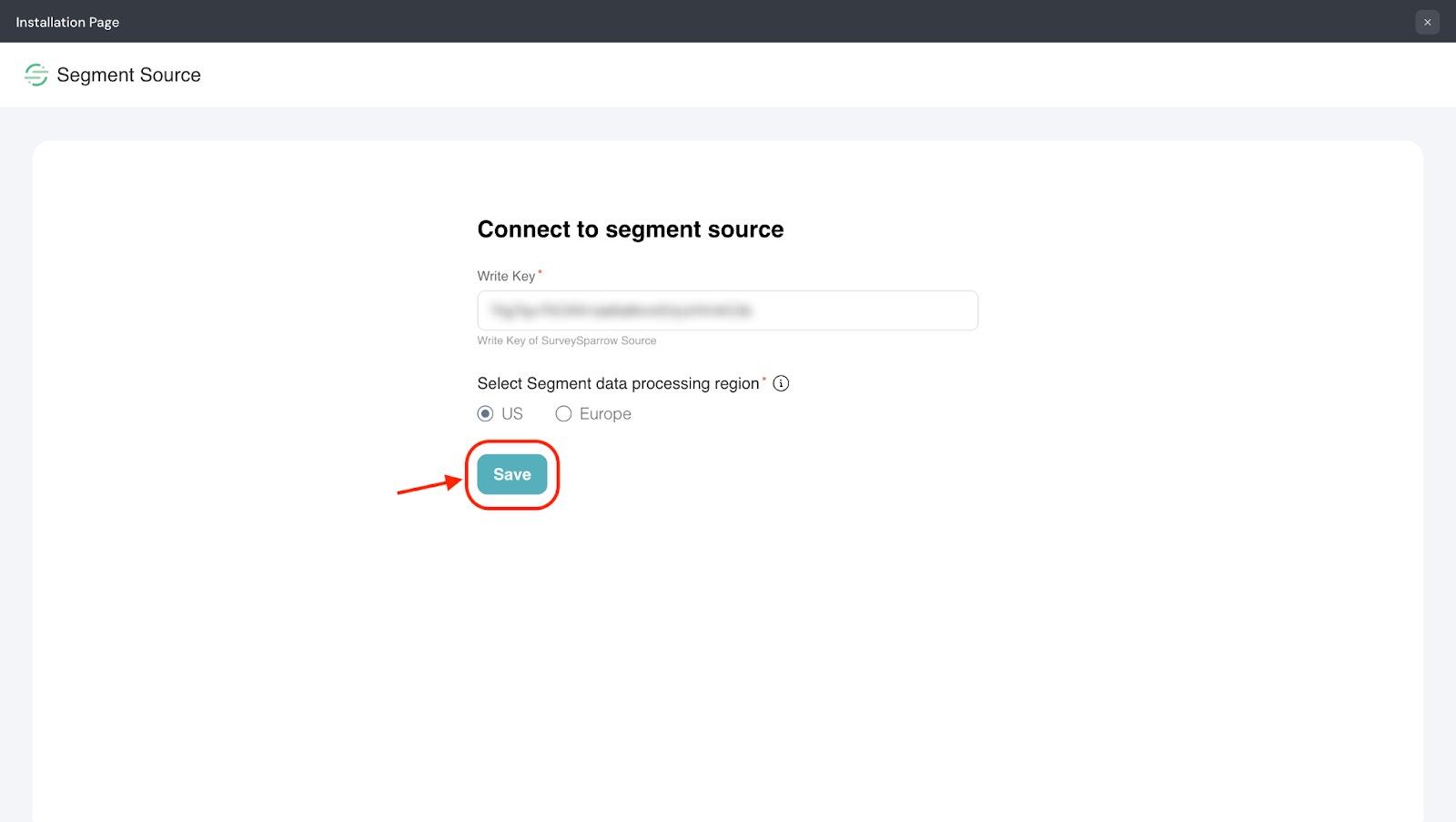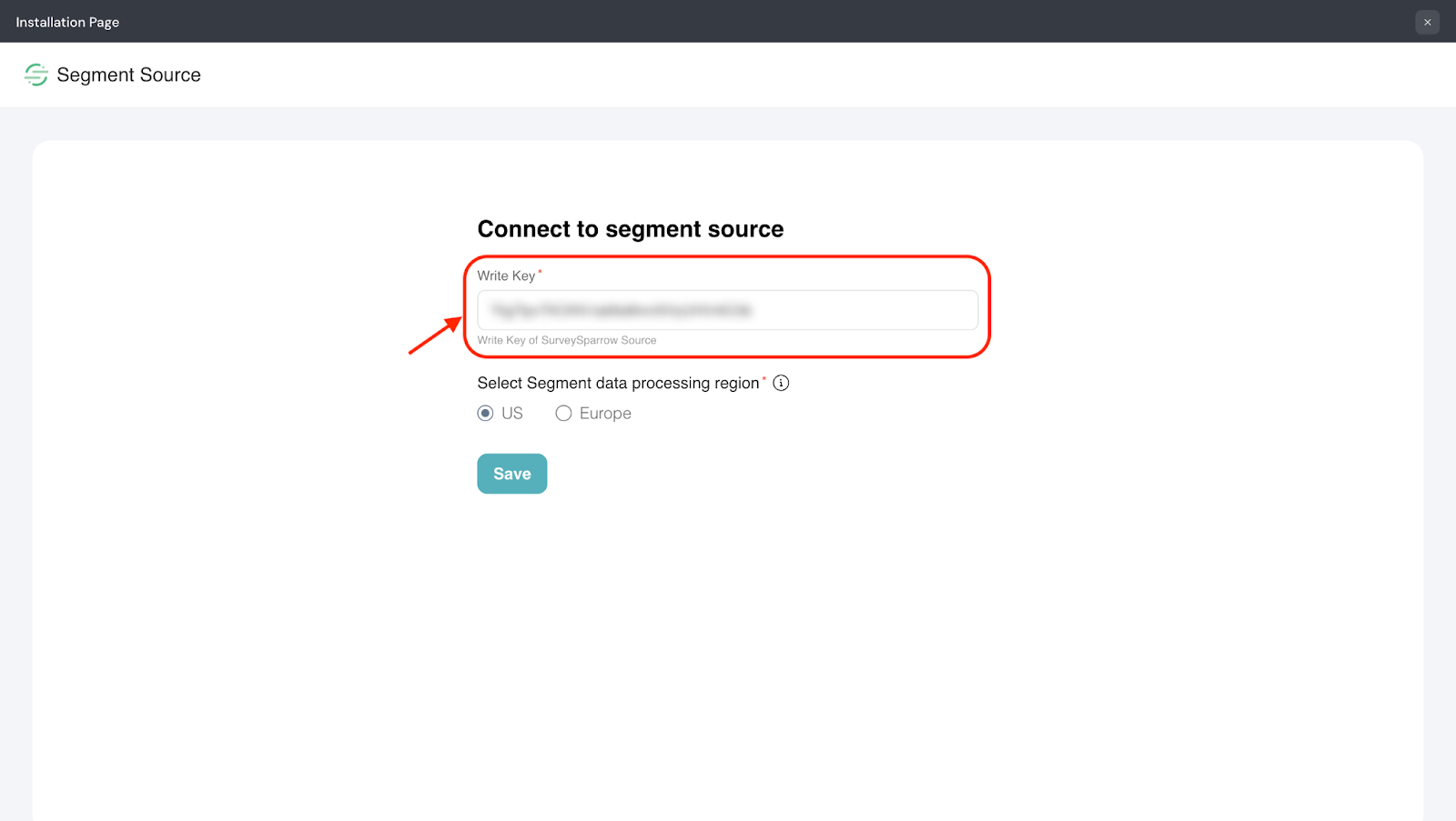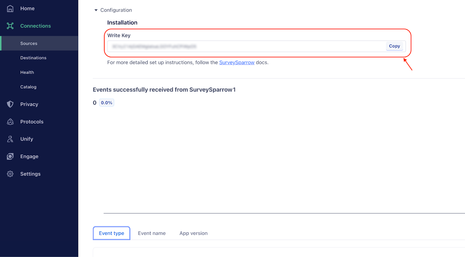 7. Copy the Write key and keep it safe to use while setting up the integration in SurveySparrow.