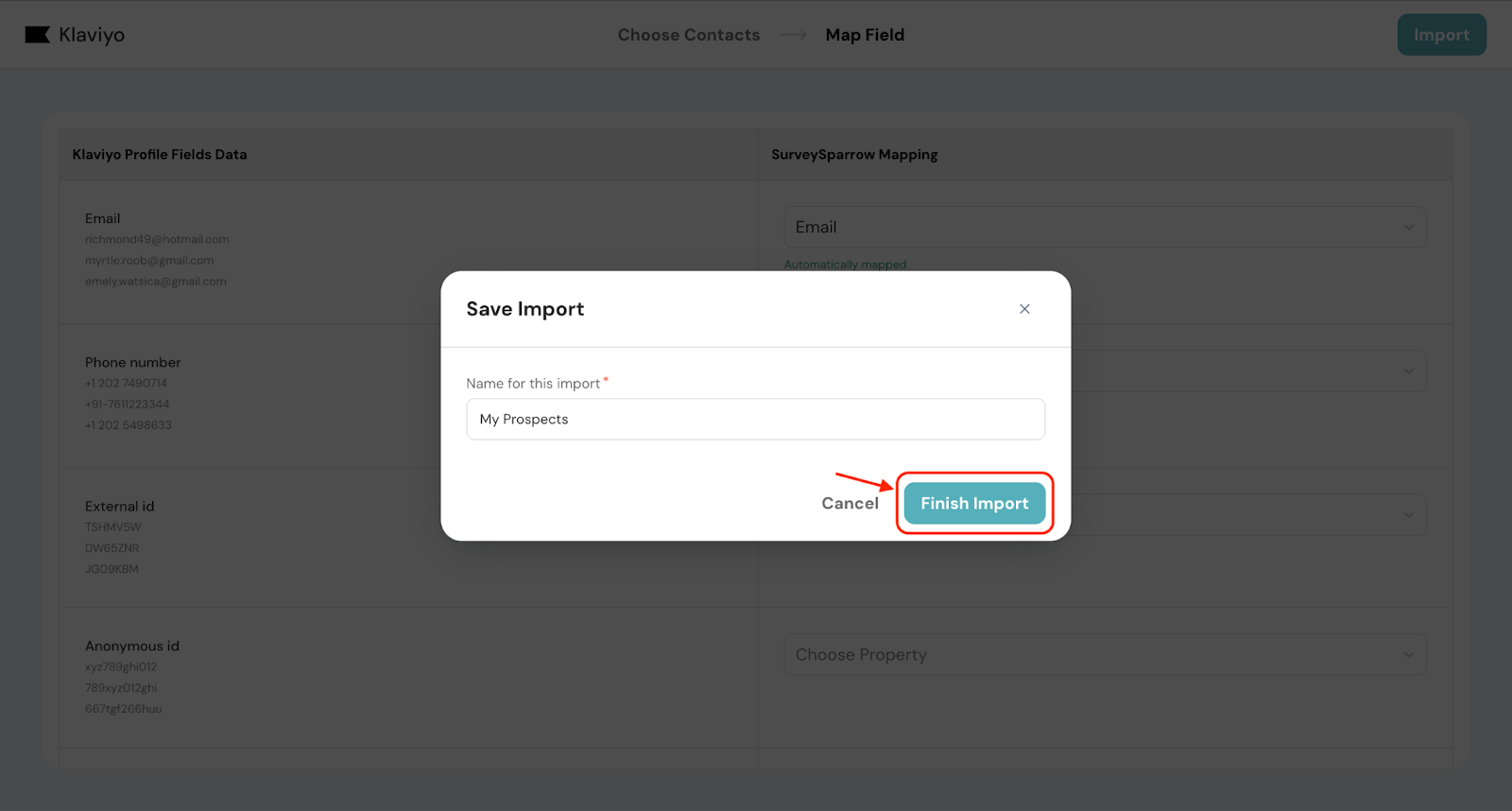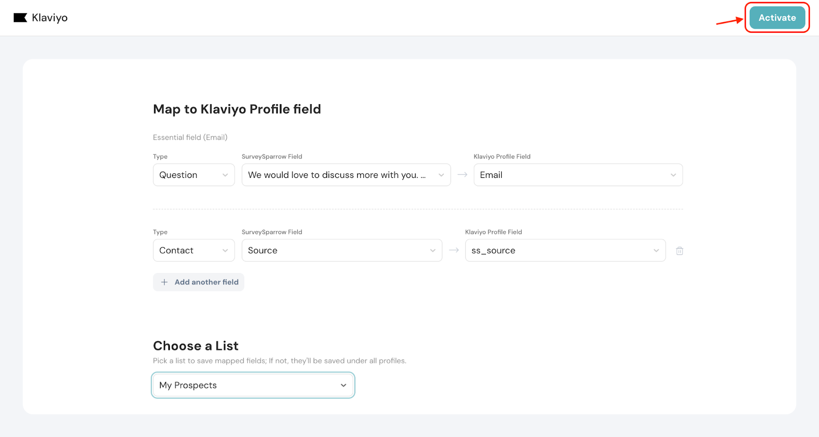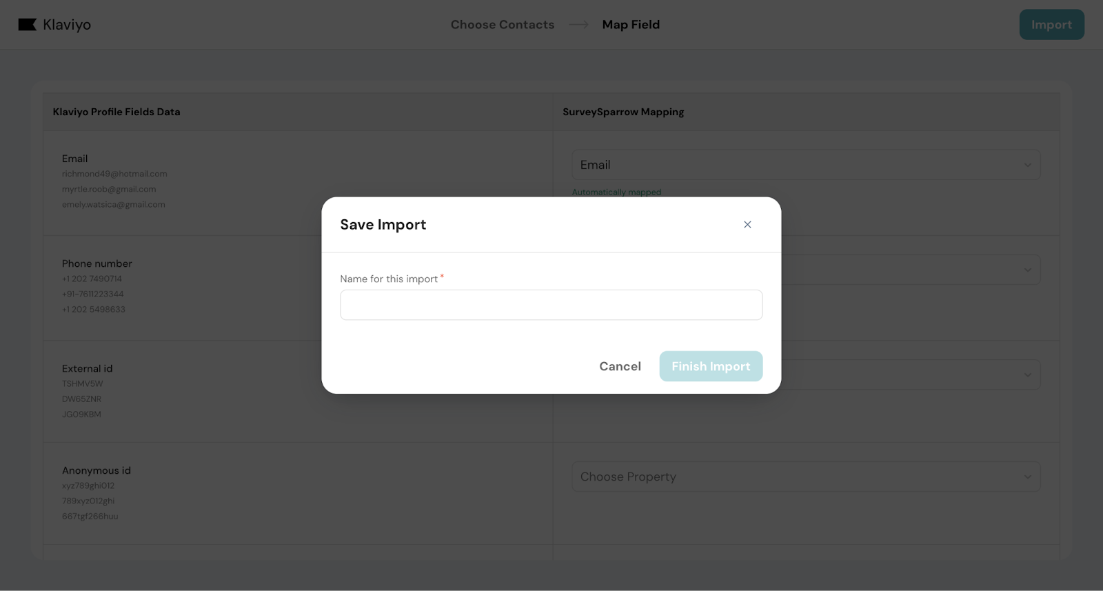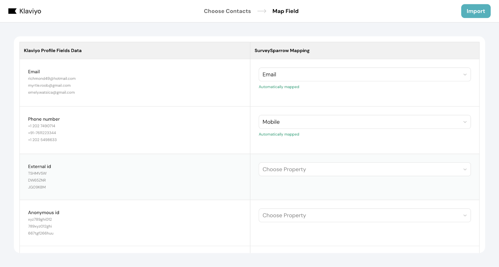 7. Map the Klaviyo profile fields to SurveySparrow’s contact fields.