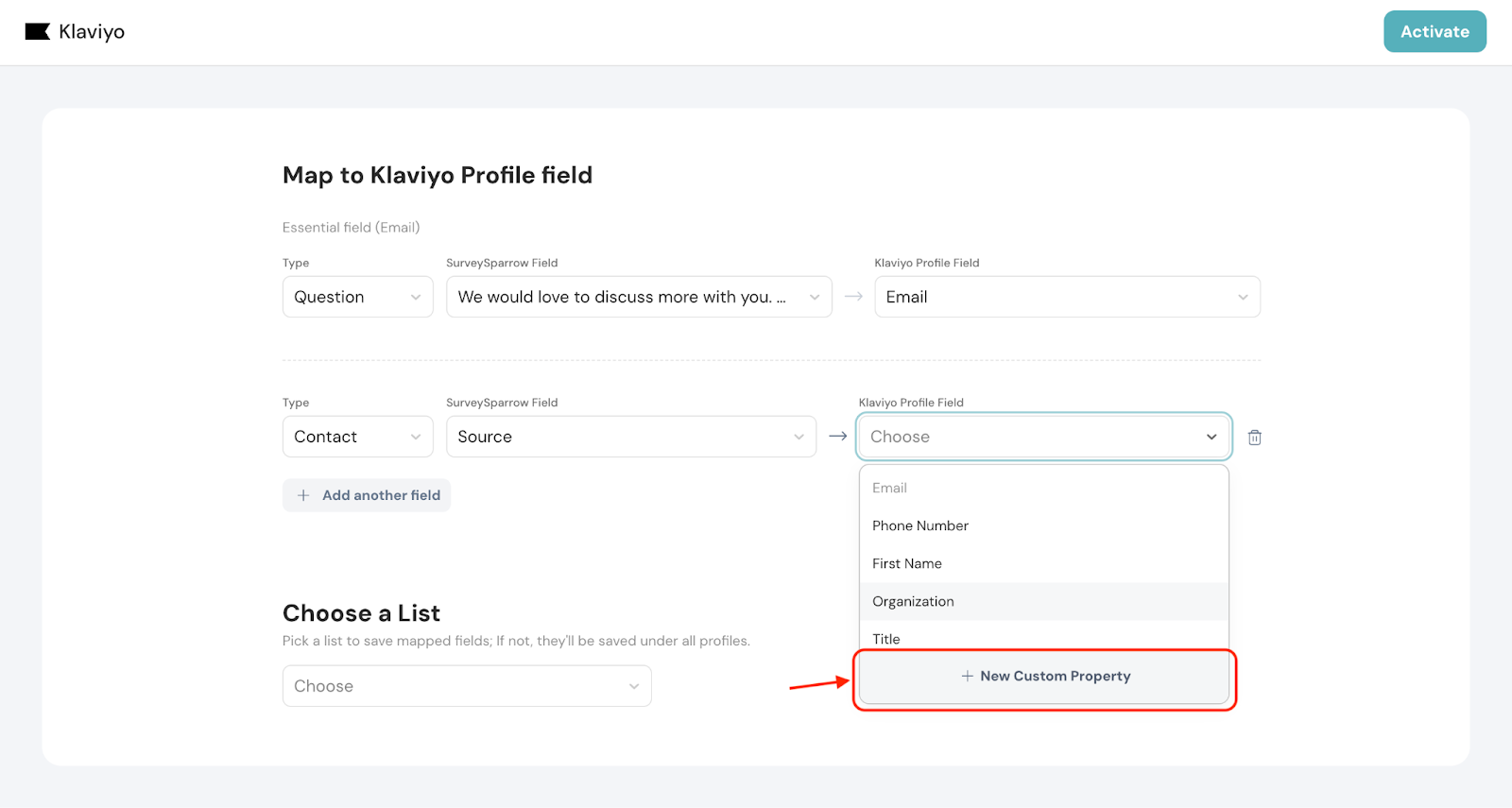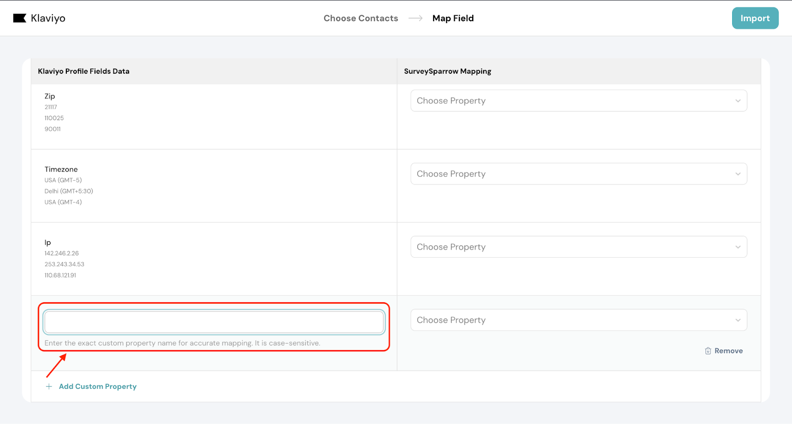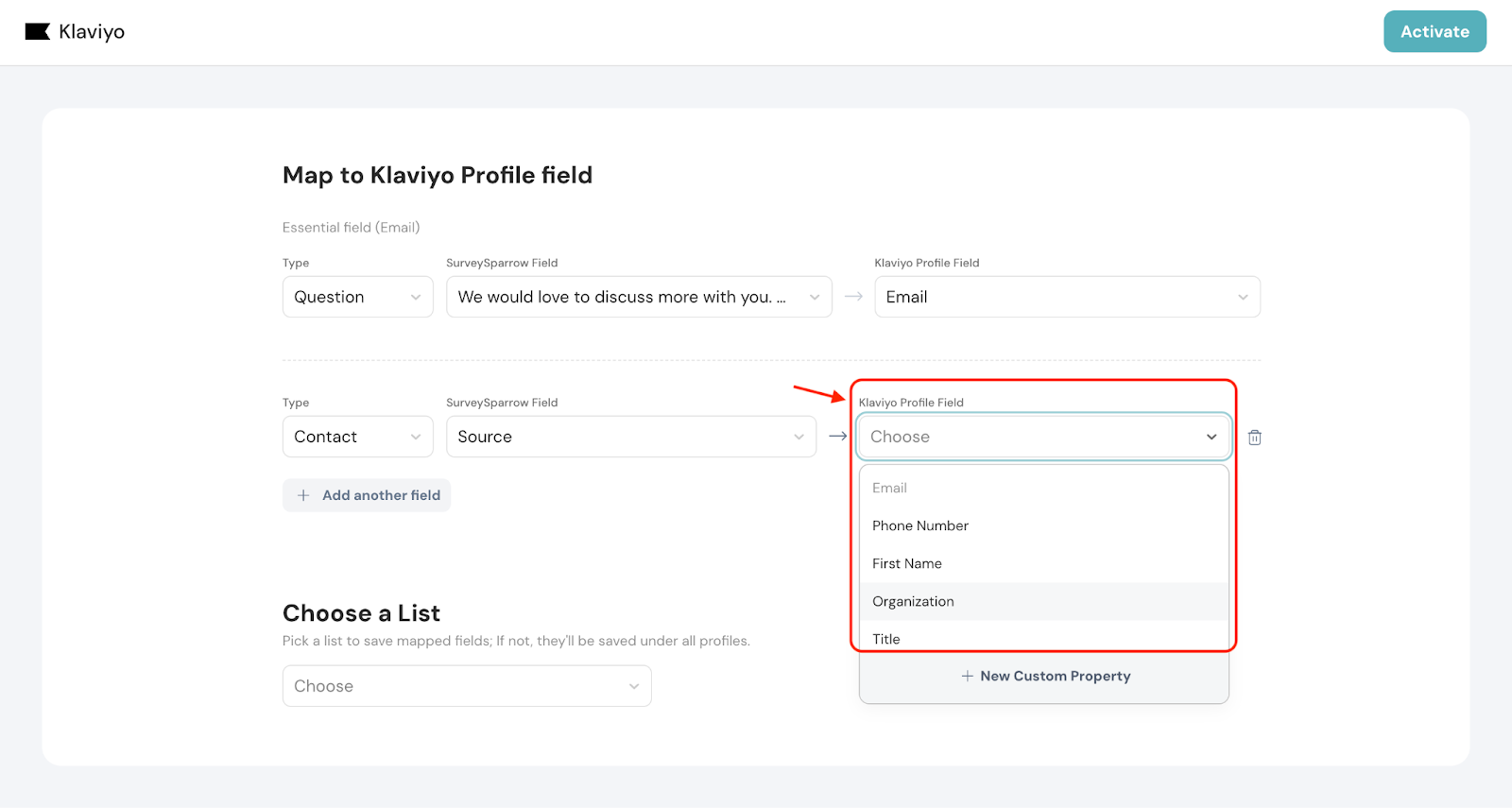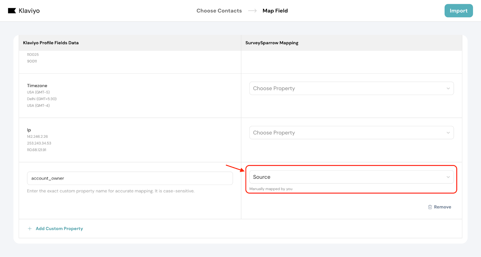 7. Map the Klaviyo profile fields to SurveySparrow’s contact fields.