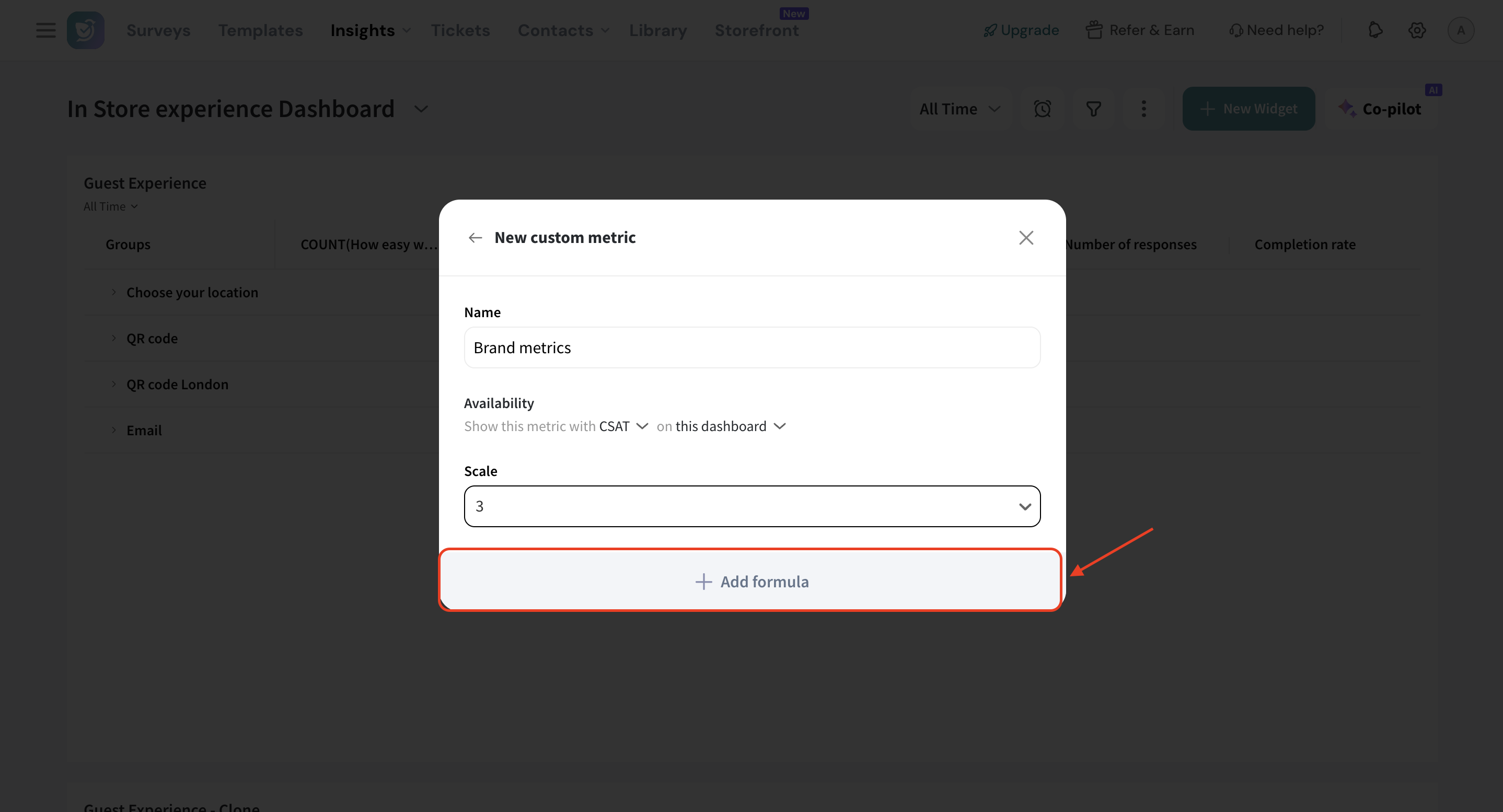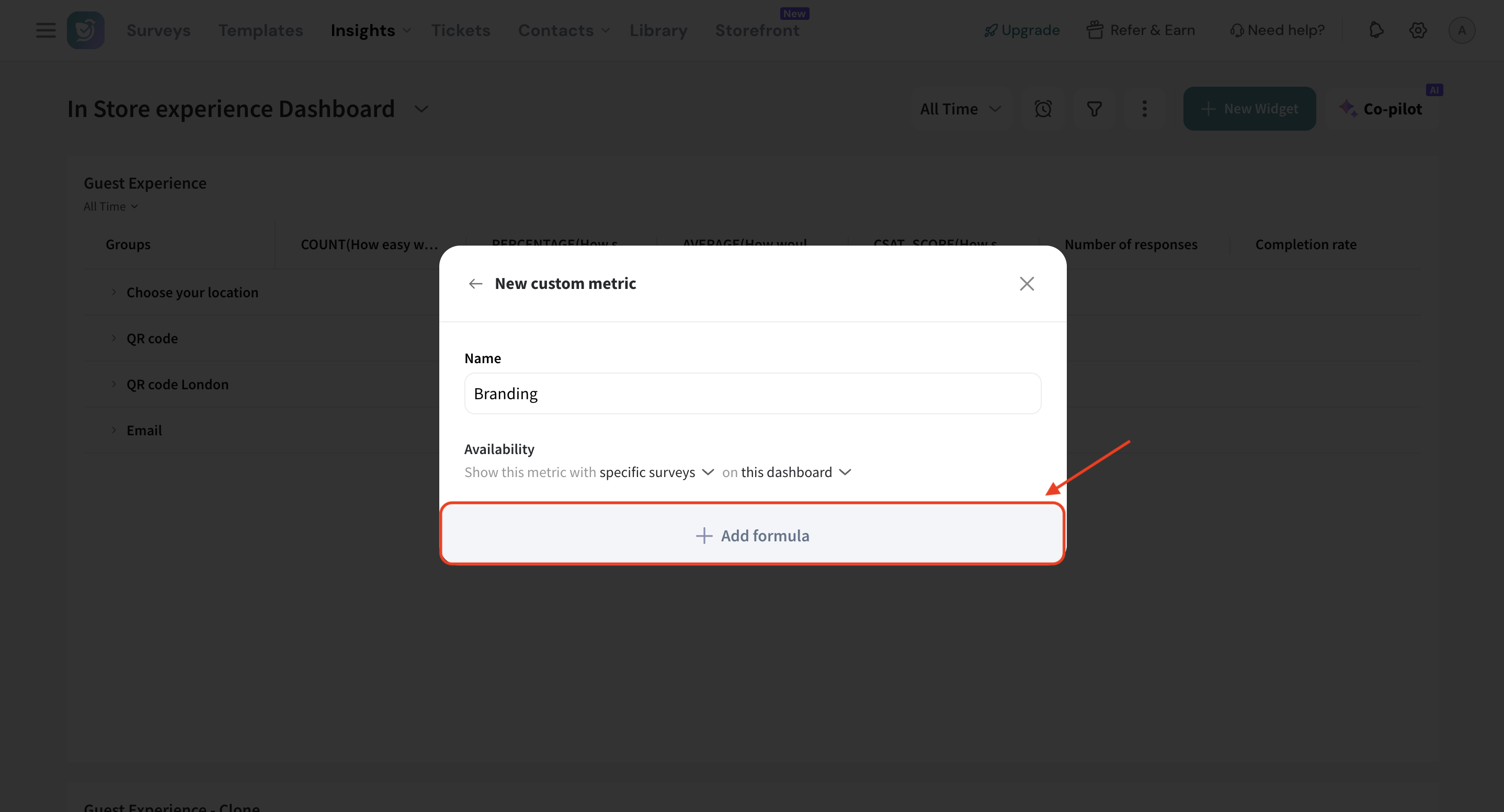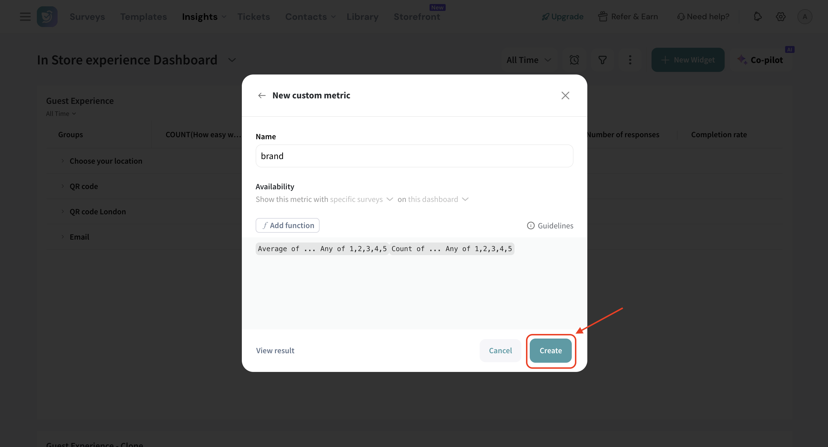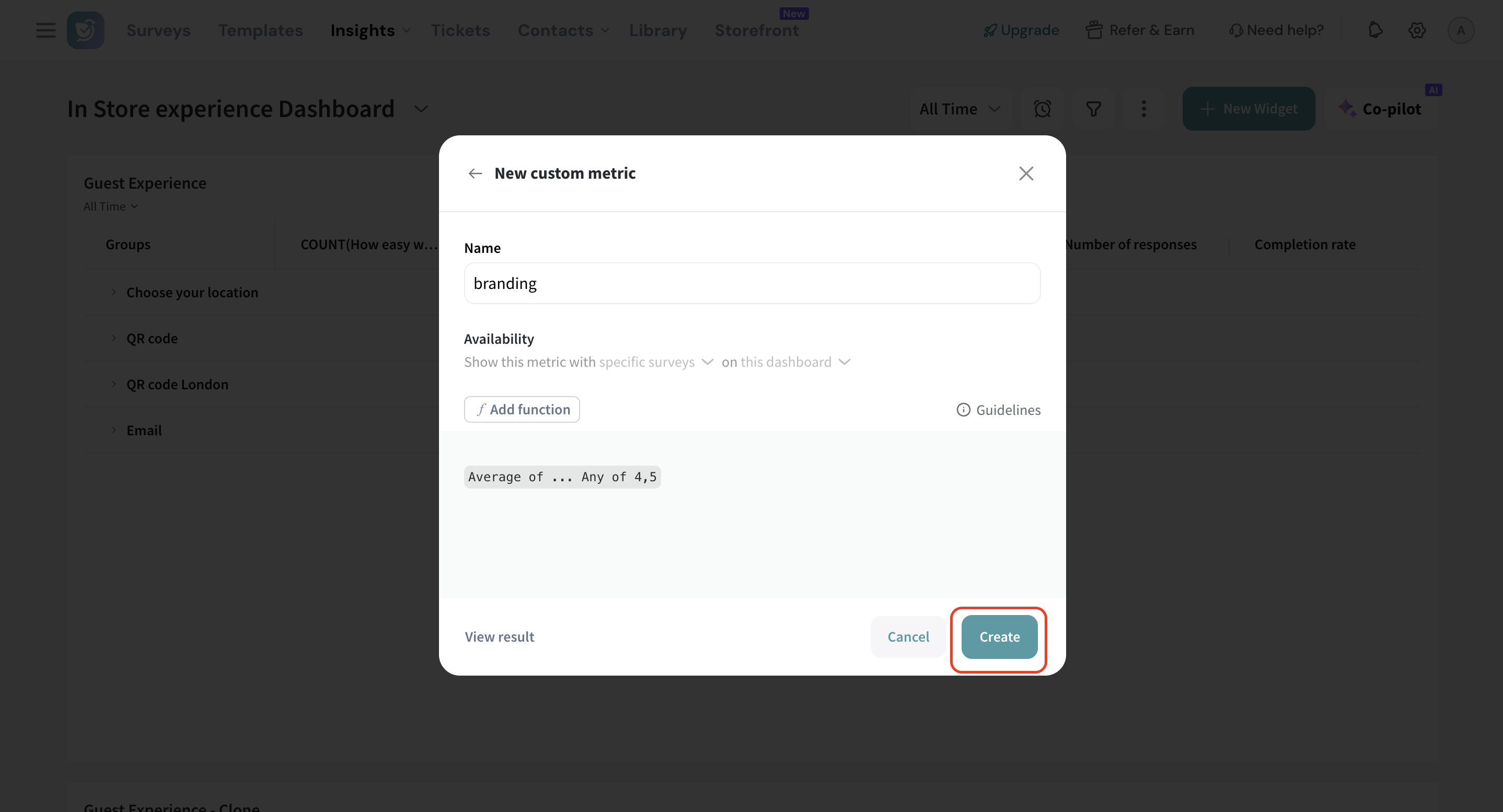 - Custom metric (Already defined custom metrics will be available as a function for creating a custom metric with questions from specific surveys)