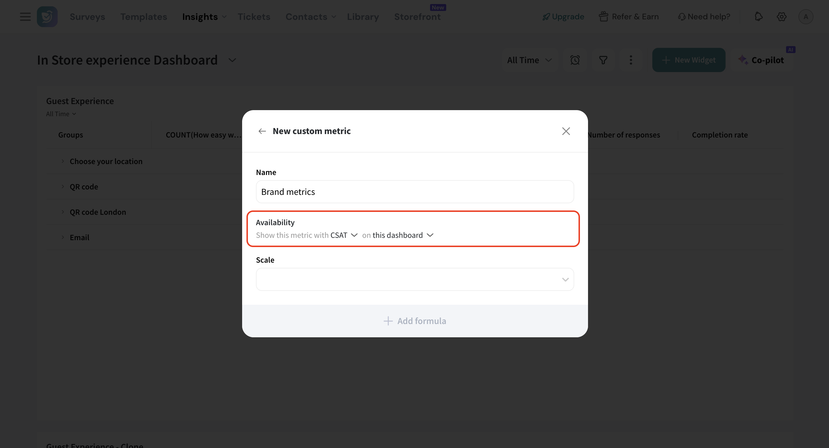 2. Set the availability of the custom metric to the current dashboard or have it accessible across all your dashboards.