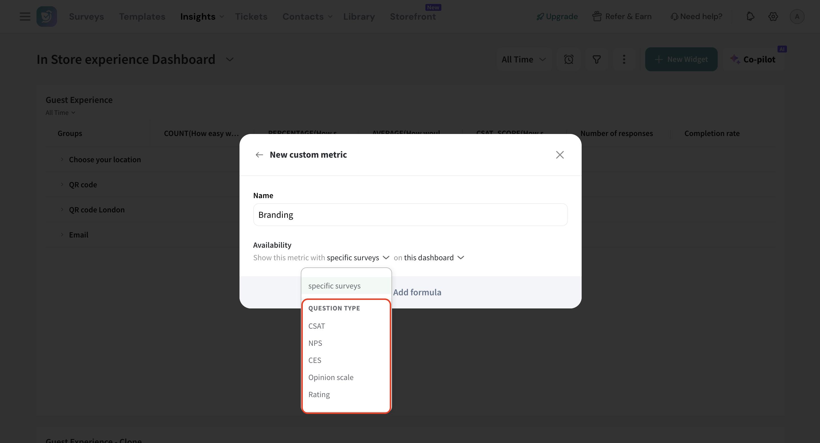 4. You can build the metric with questions from specific surveys or using a specific question type.
