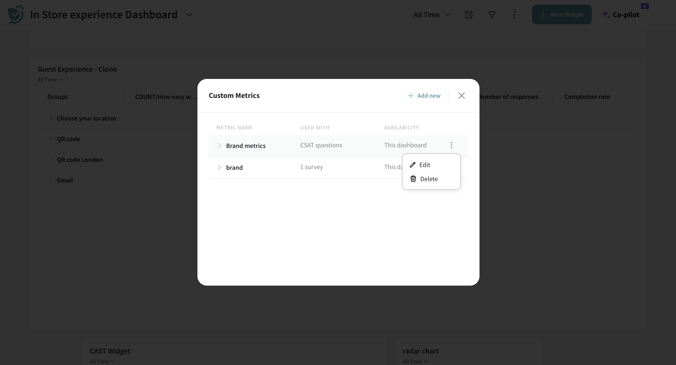 You can choose to edit or delete a customer metric by selecting the corresponding option.
