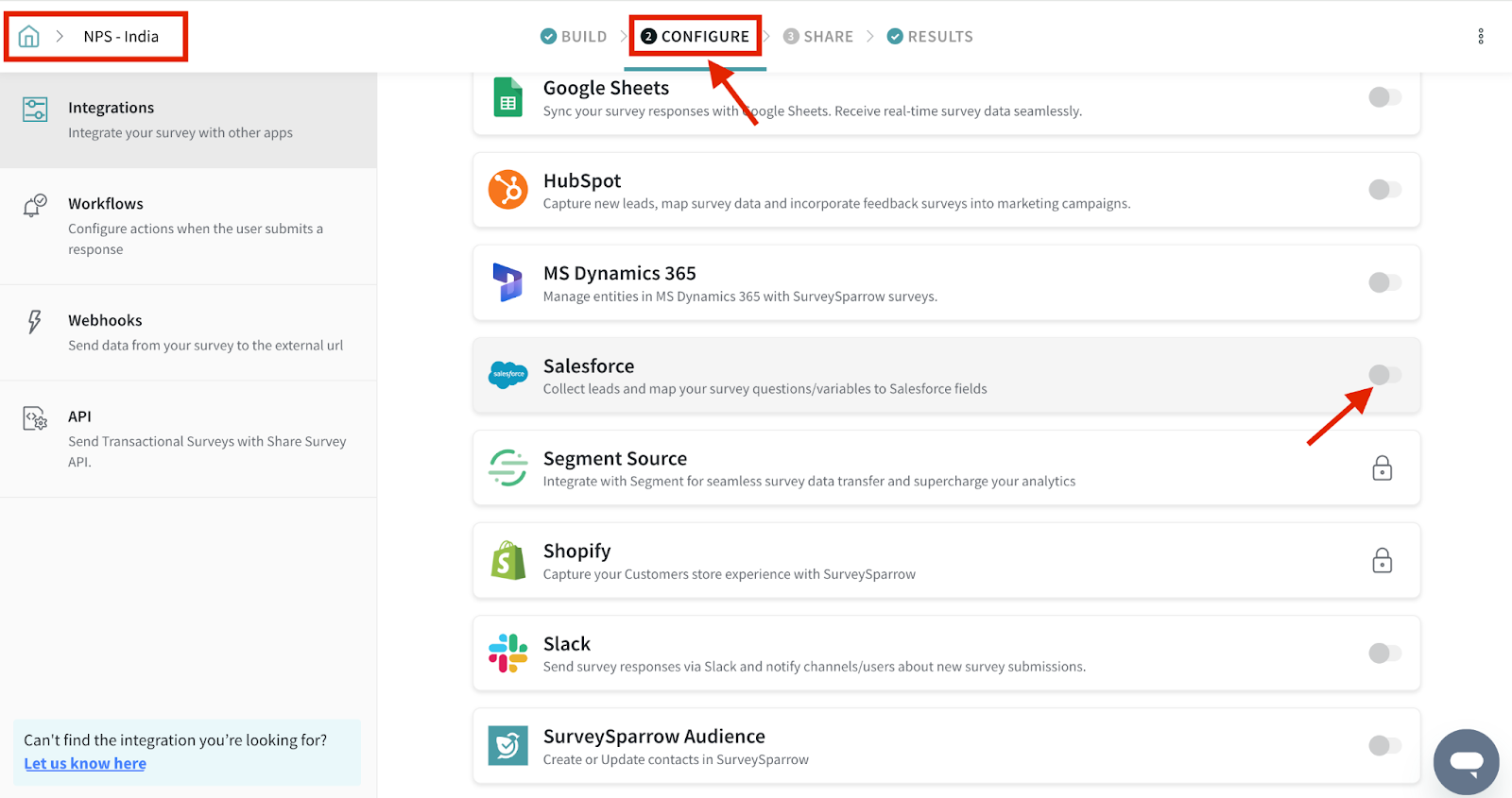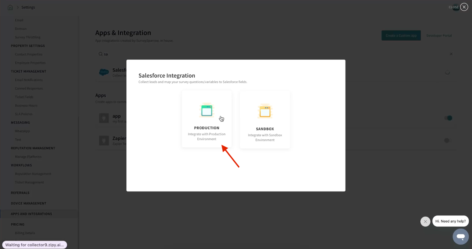 Step 1 - Configure Salesforce Integration in SurveySparrow (Sandbox)