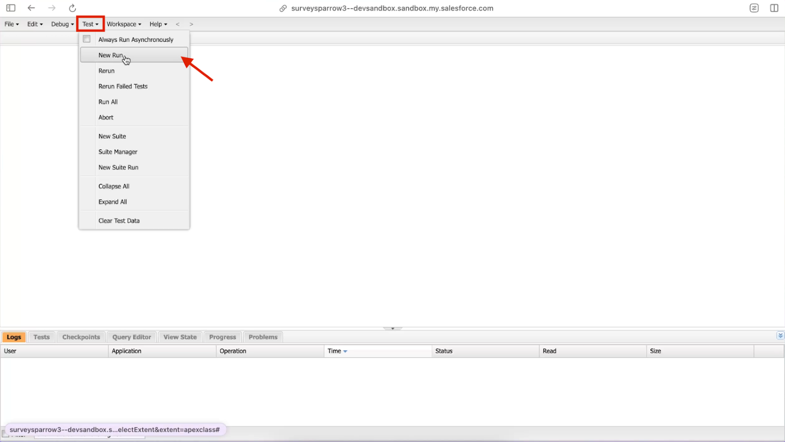 - Click on “Test” and select ‘New Run’ from the dropdown menu.