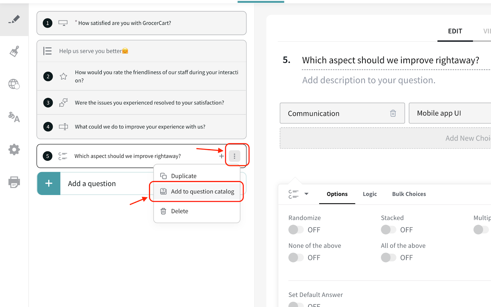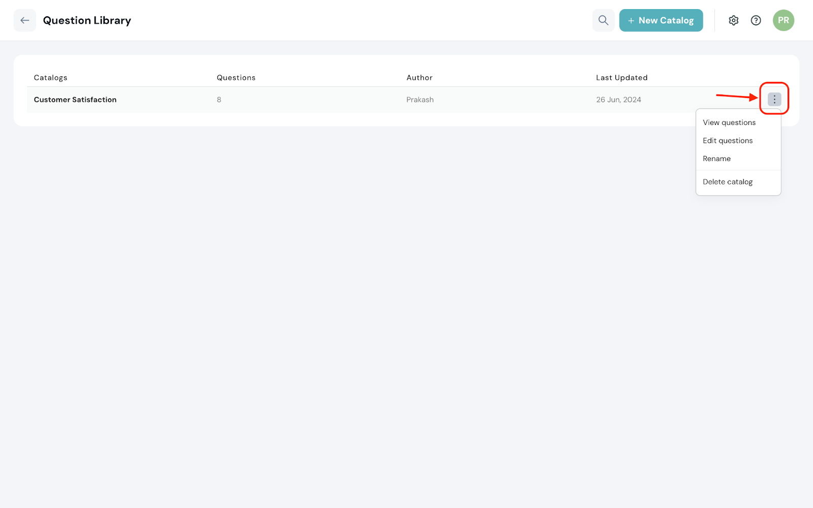 1. Click the 3-dot icon of the question, and select Add to question catalogue.