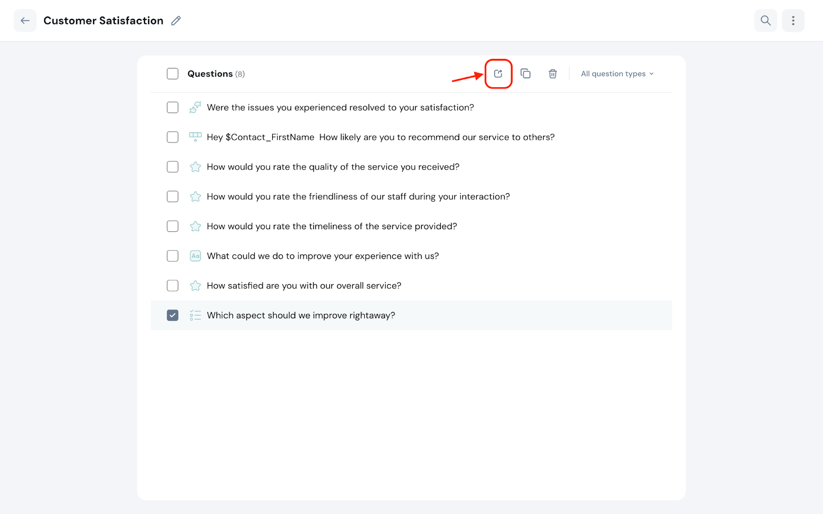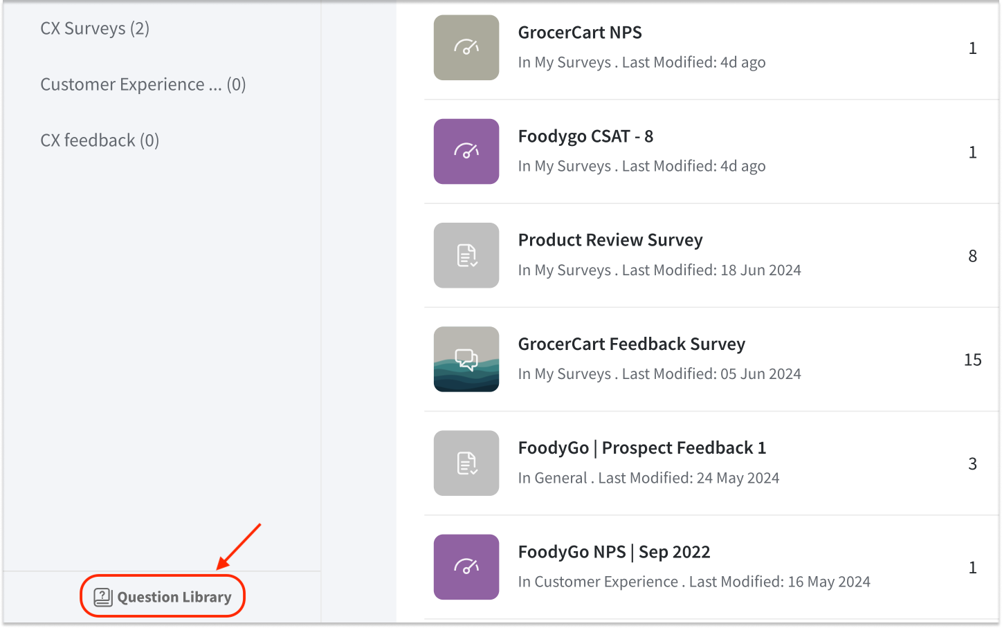 Now, all the selected question(s) from the Question library will be added to the survey.