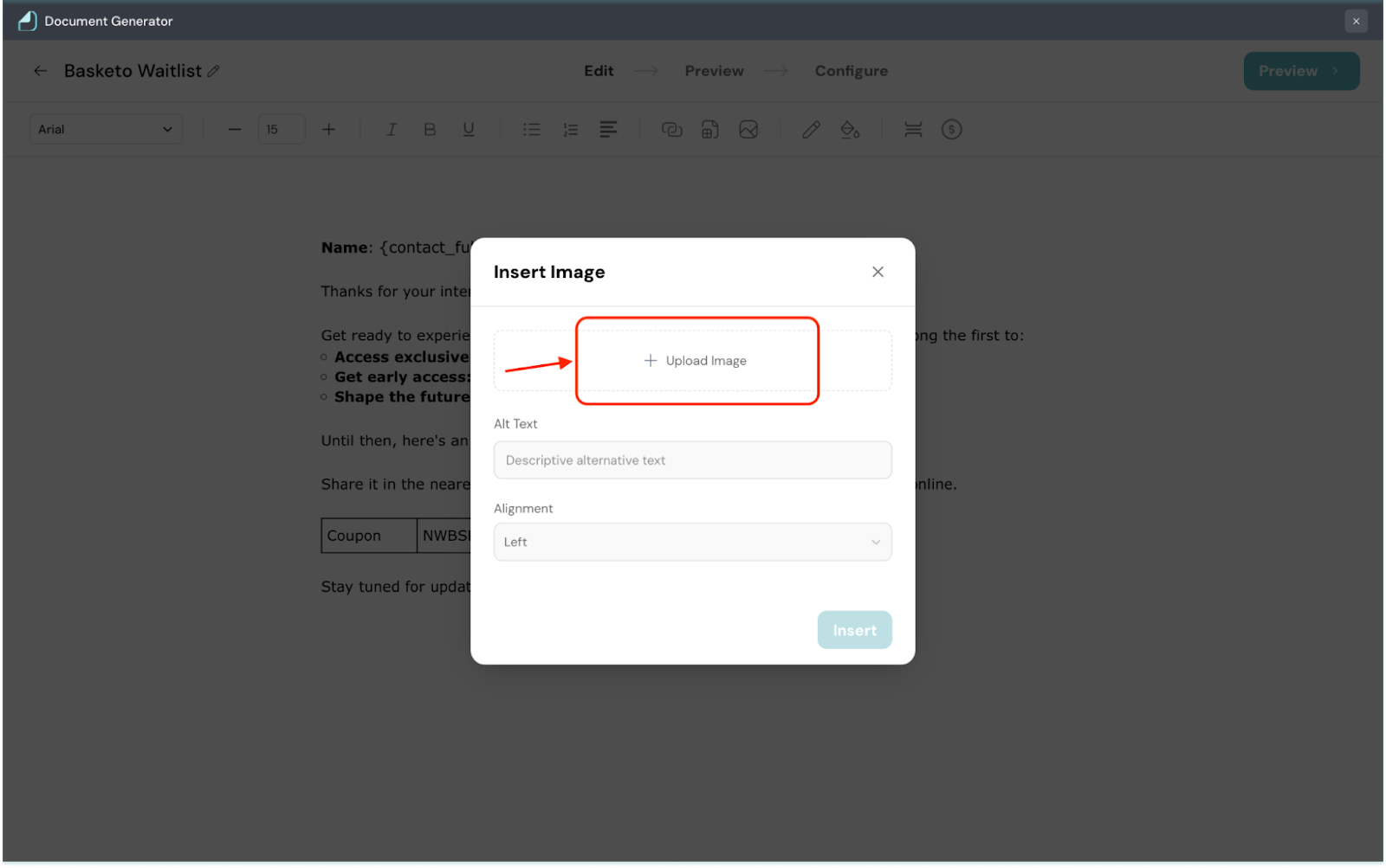 3. Enter the Alt Text for the image.