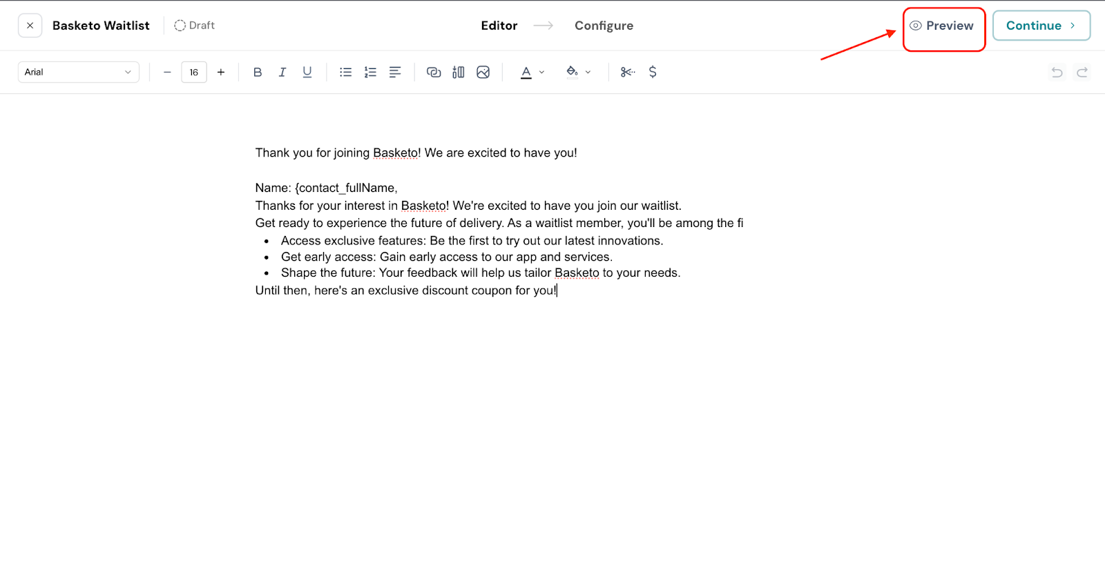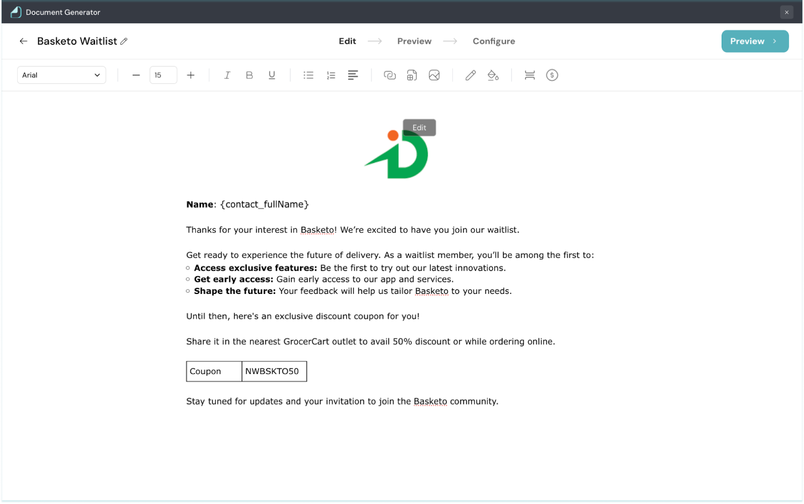 1. Once you finish editing your document, click Preview.