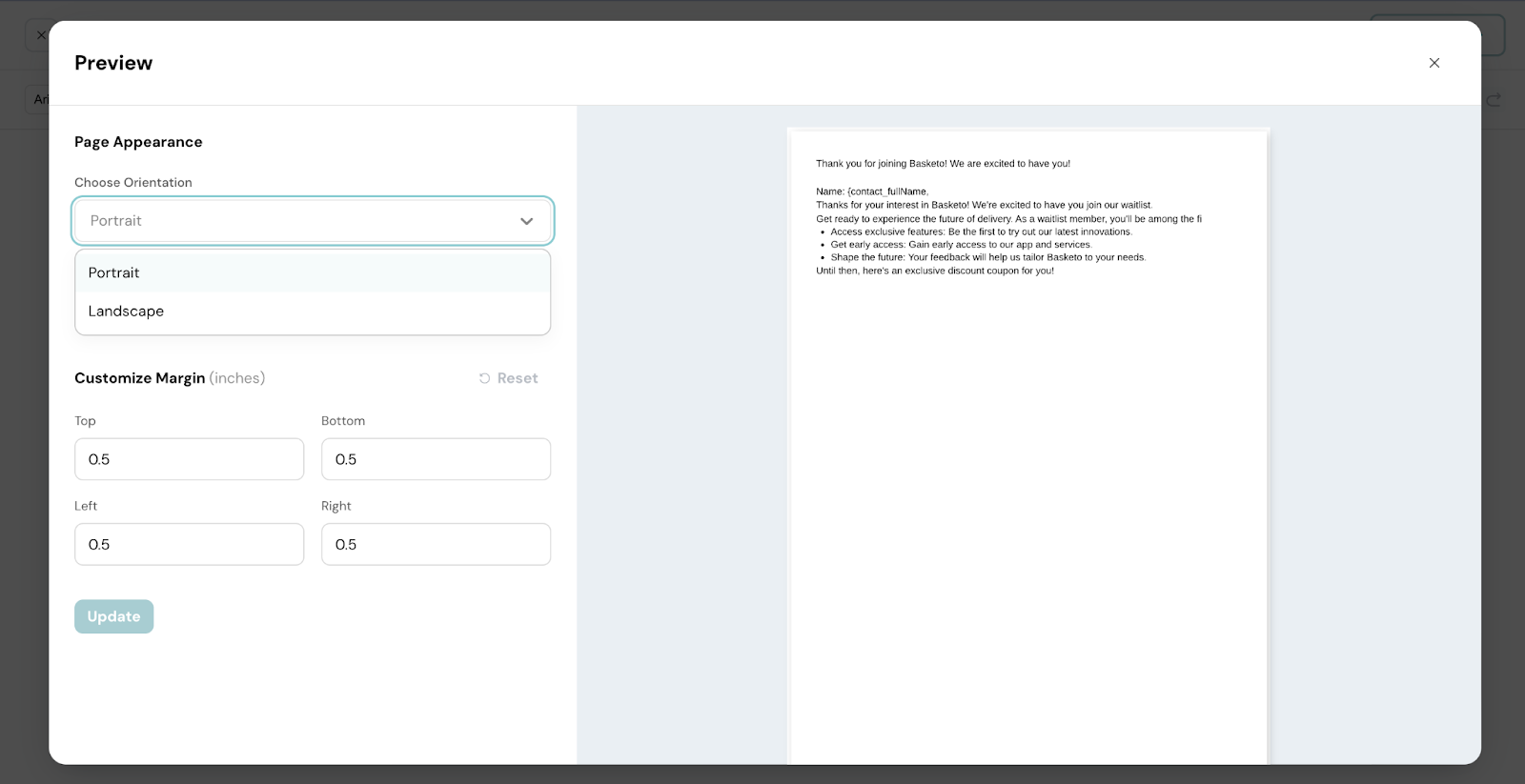 2. Choose a page orientation for the document.