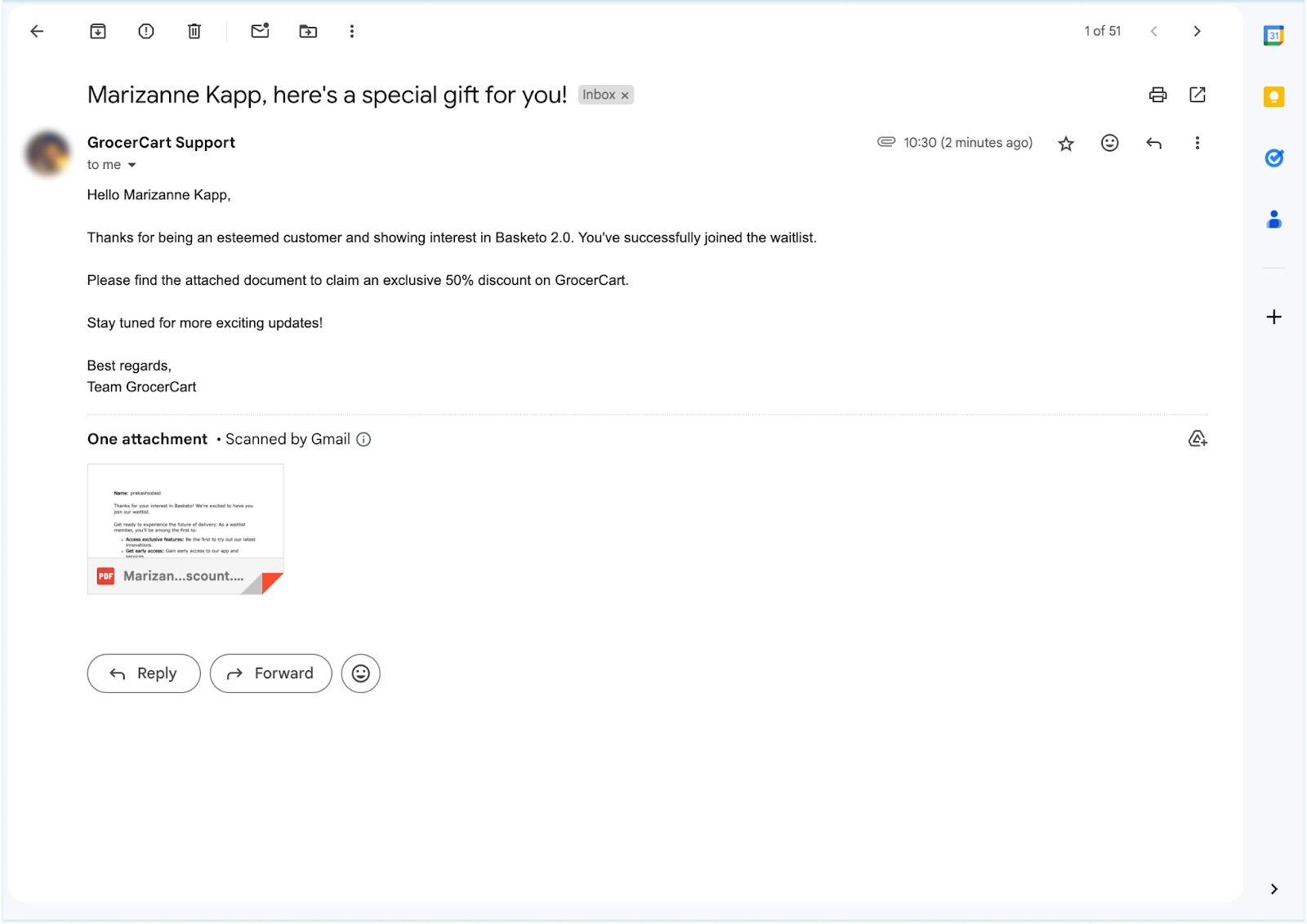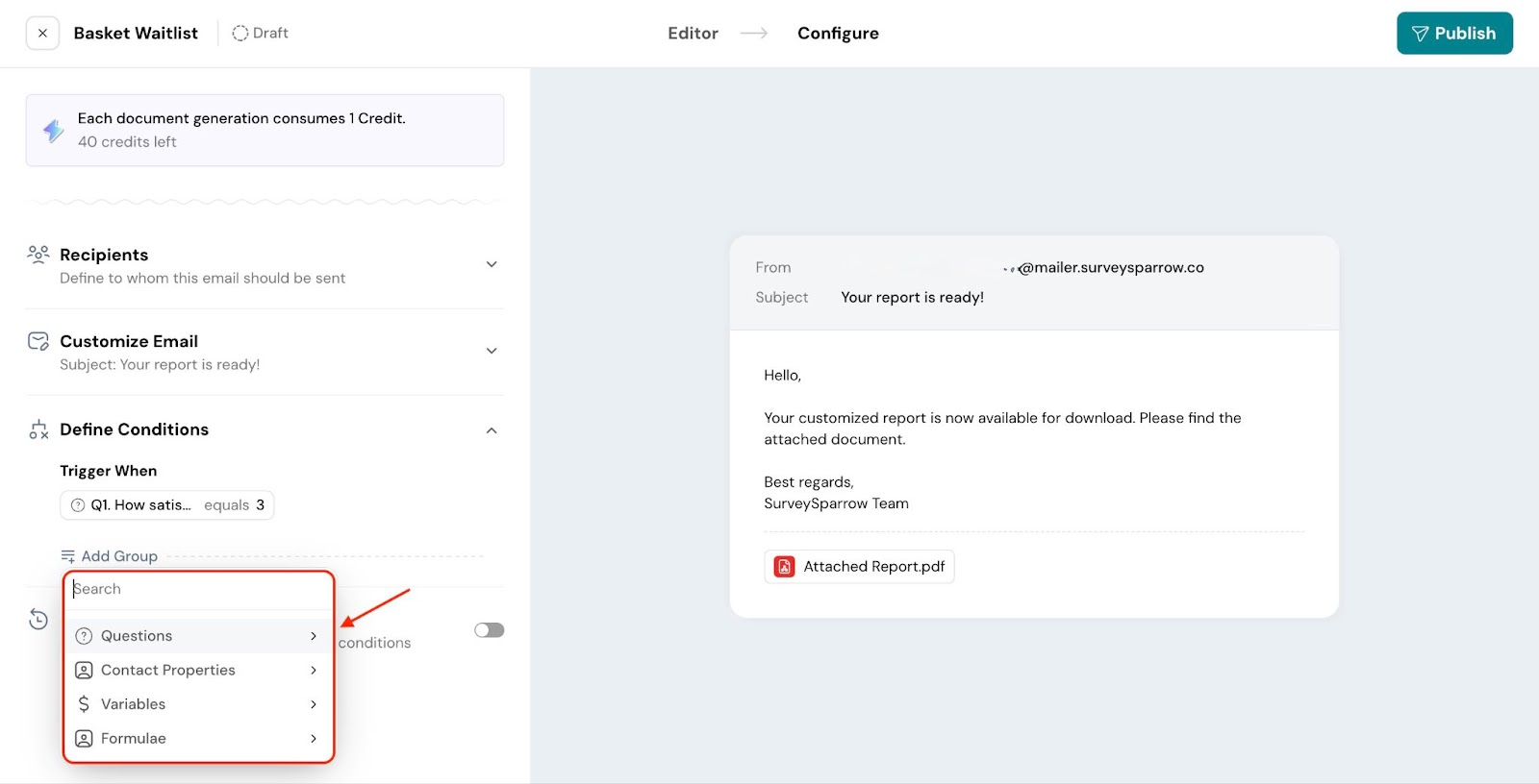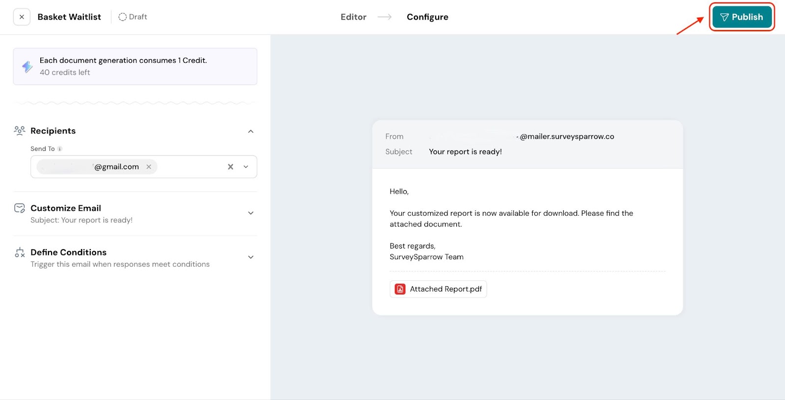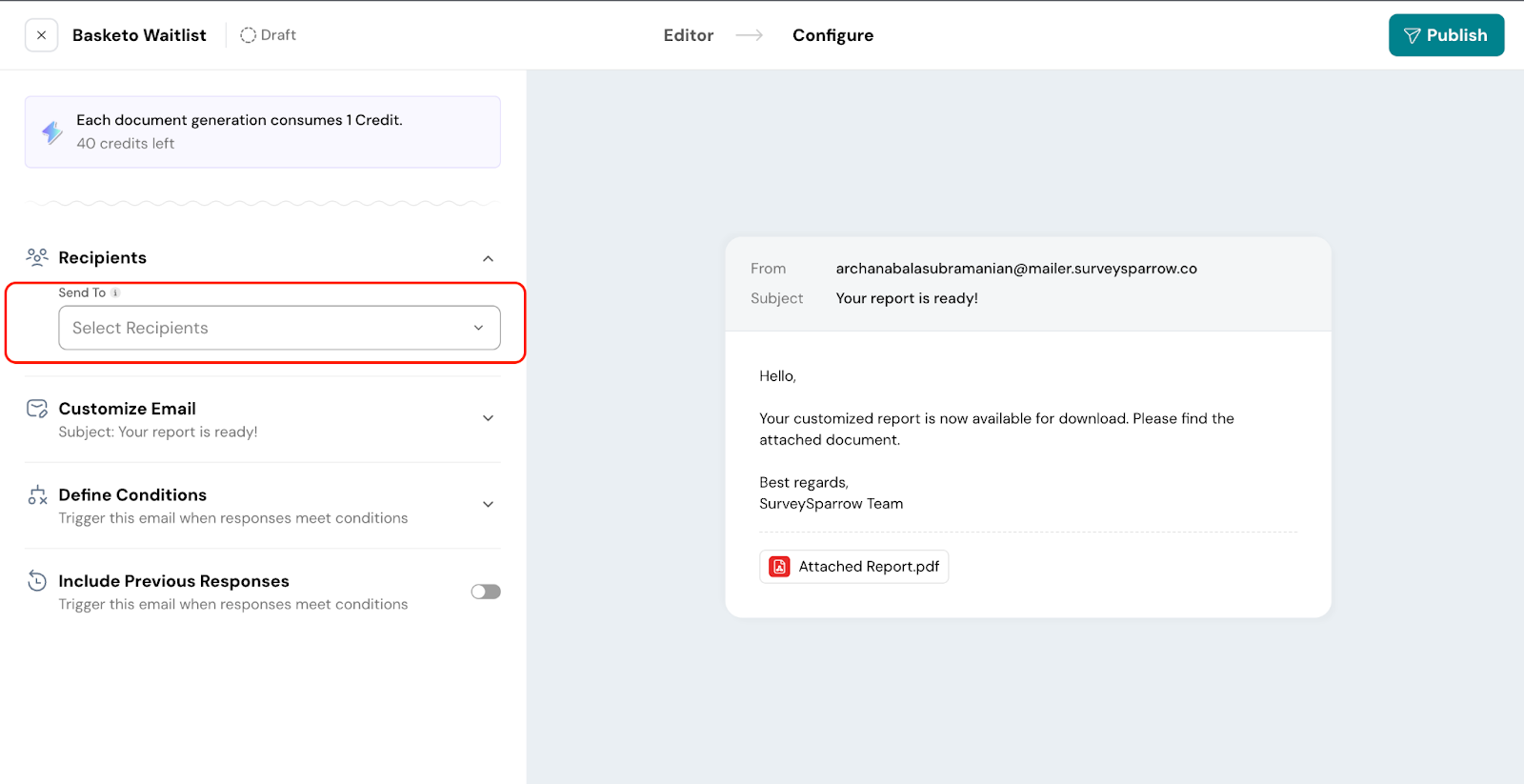 Now, when a respondent submits the survey, they’ll receive an email with the document attached to it.