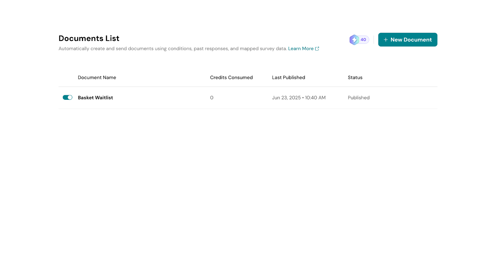 You can now view the documents generated. Use the toggle to enable or disable individual documents as needed.