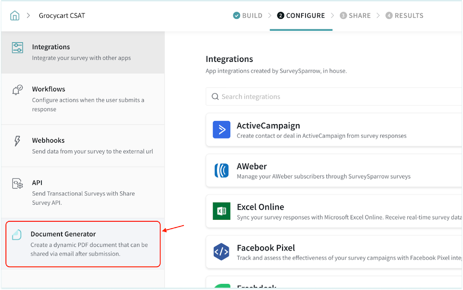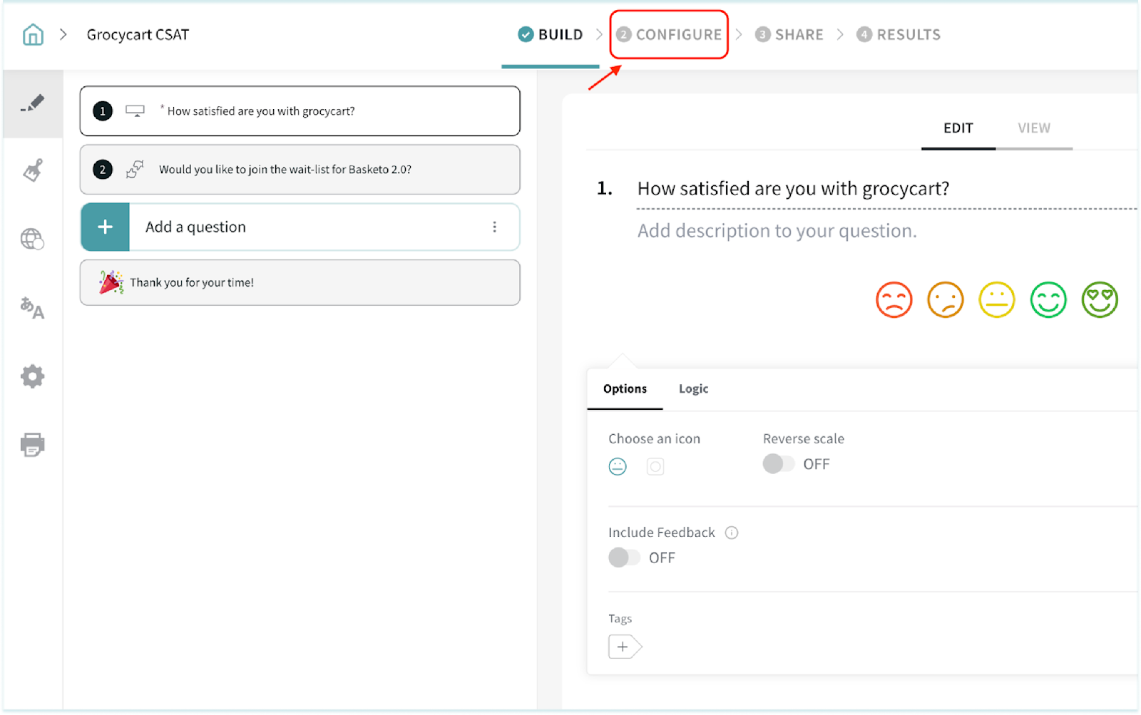 1. Navigate to the Configure section of a survey.
