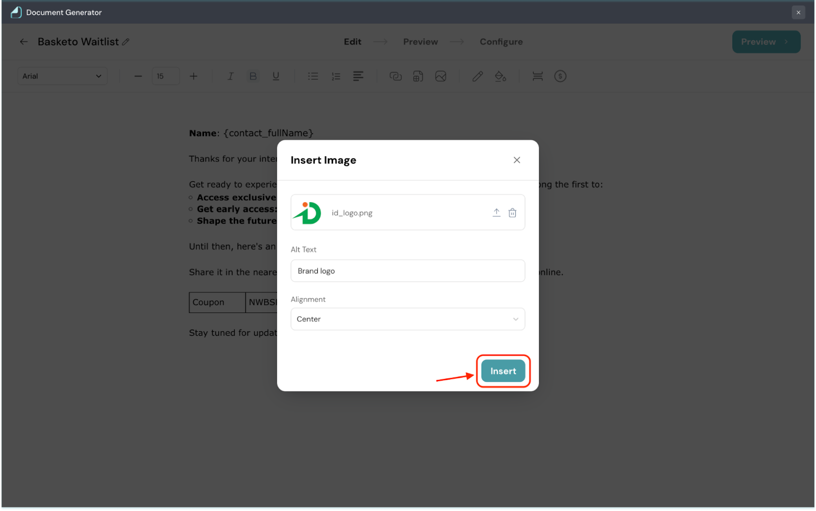 5. Once done, click Insert.