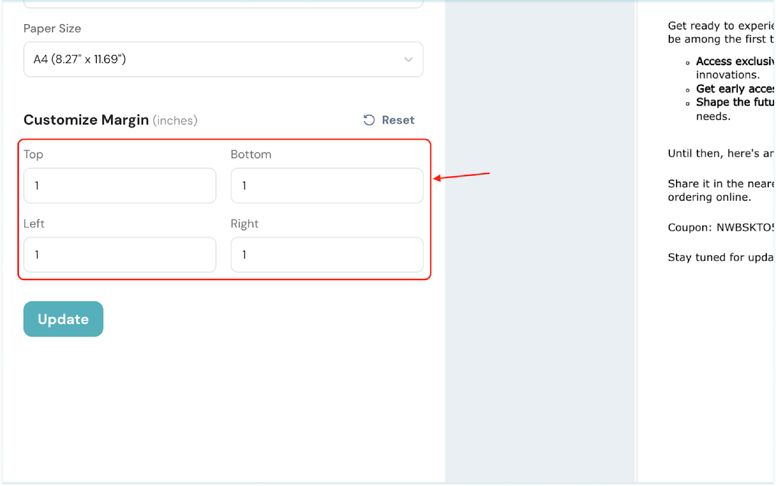 4. Customize the margins for your document.