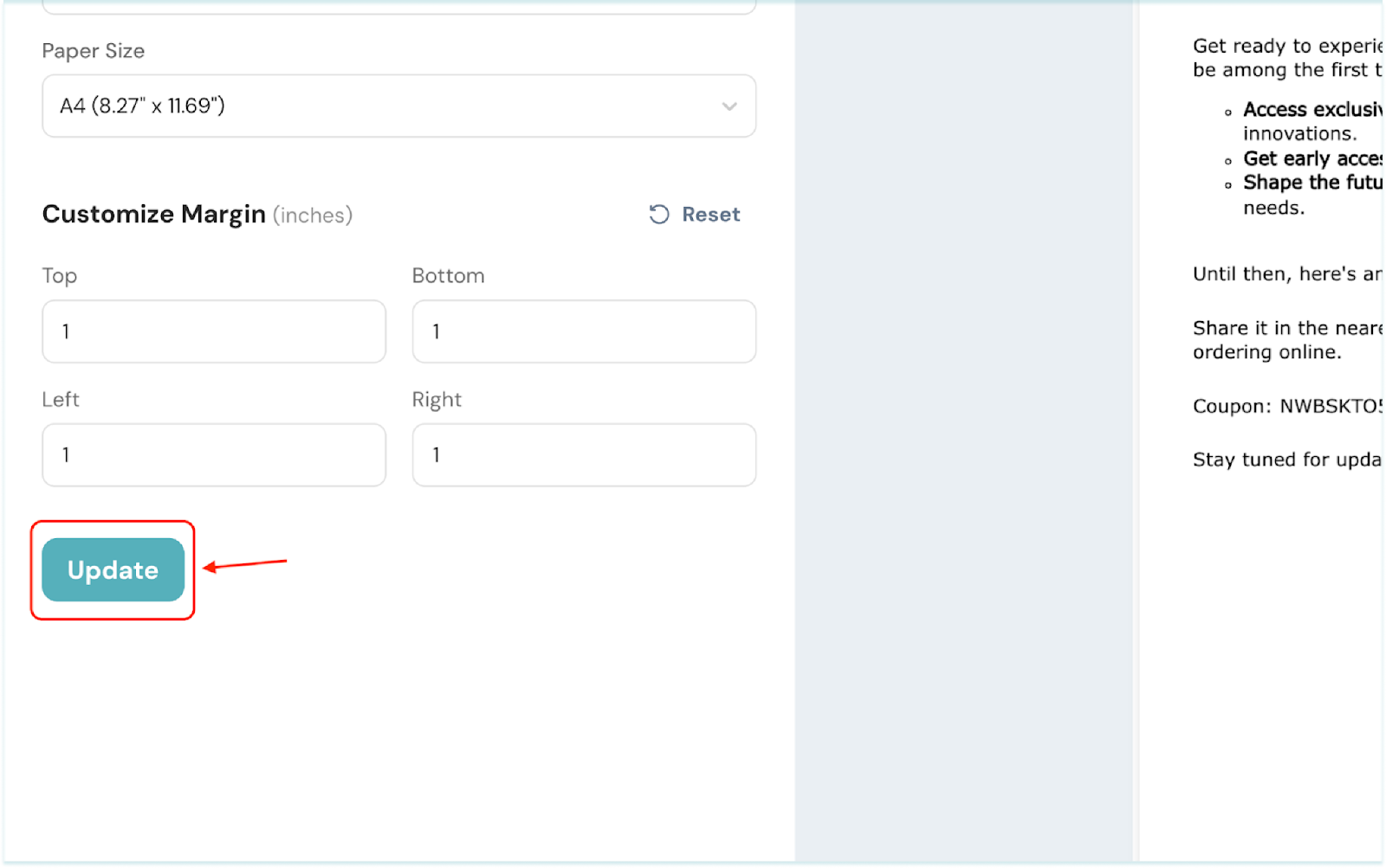 5. Once set, click Update.