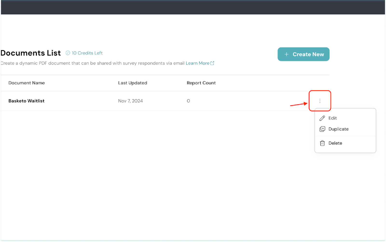 Click the 3-dot icon to proceed with editing, duplicating, or deleting the document by selecting the corresponding option.