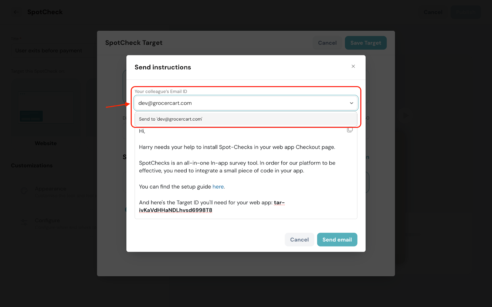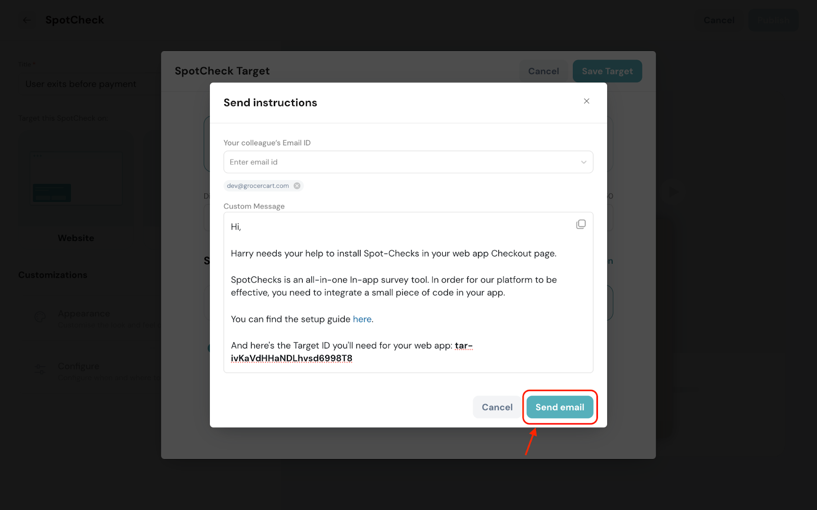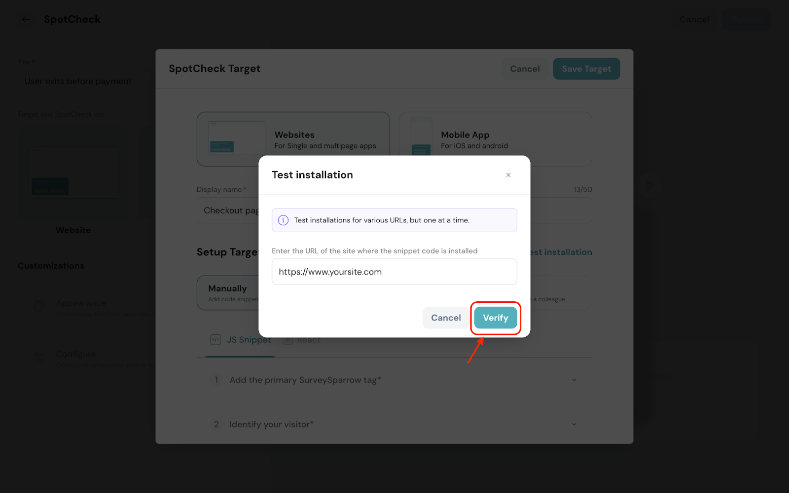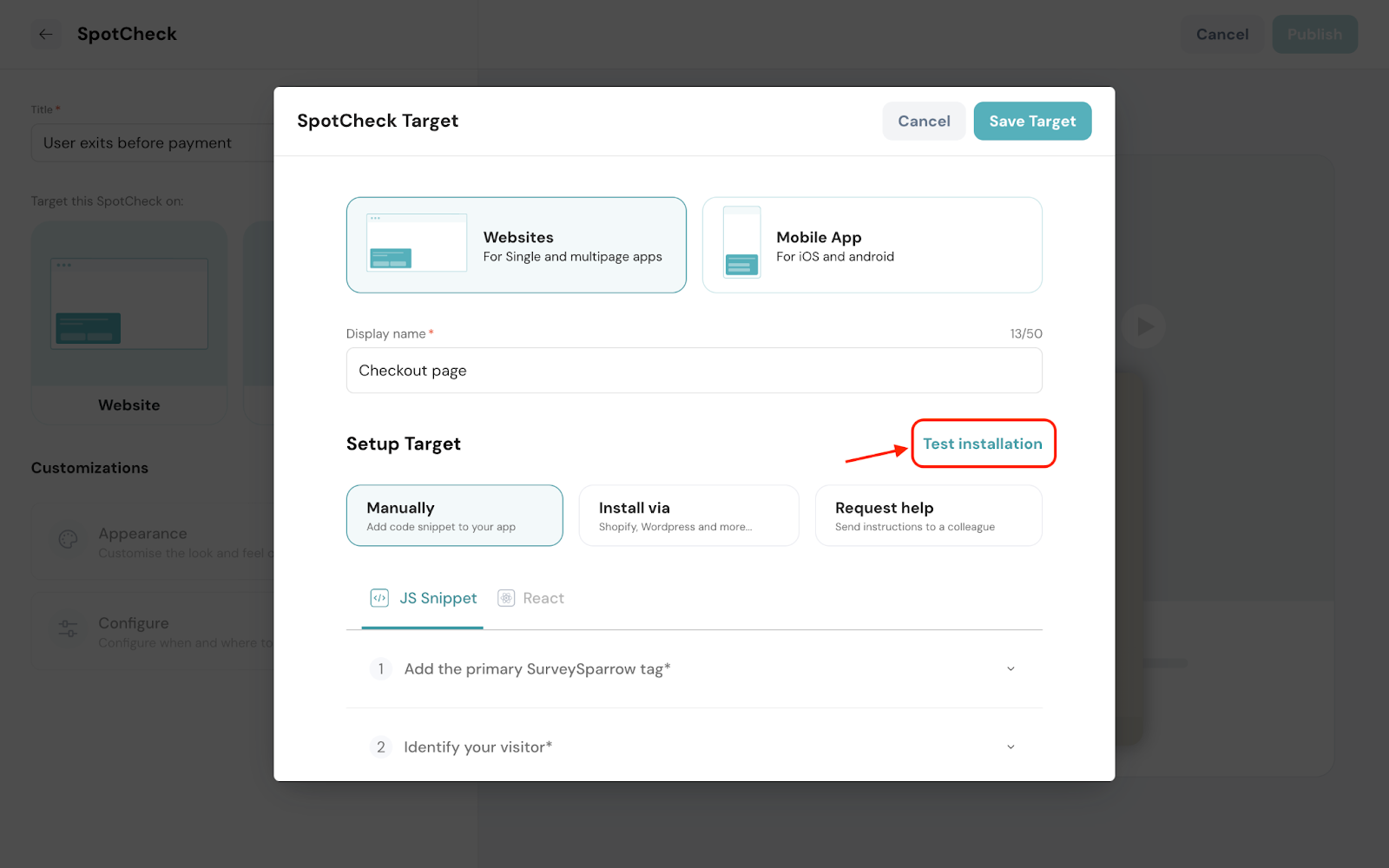The best part? It’s a one-time deployment which means after adding the code to your website, you can make any changes to the SpotChecks in SurveySparrow, and see it live in action without copy-pasting the code every time!