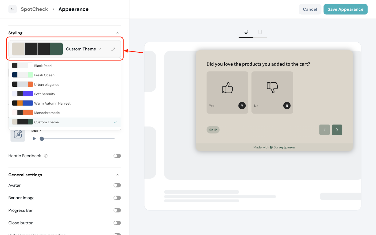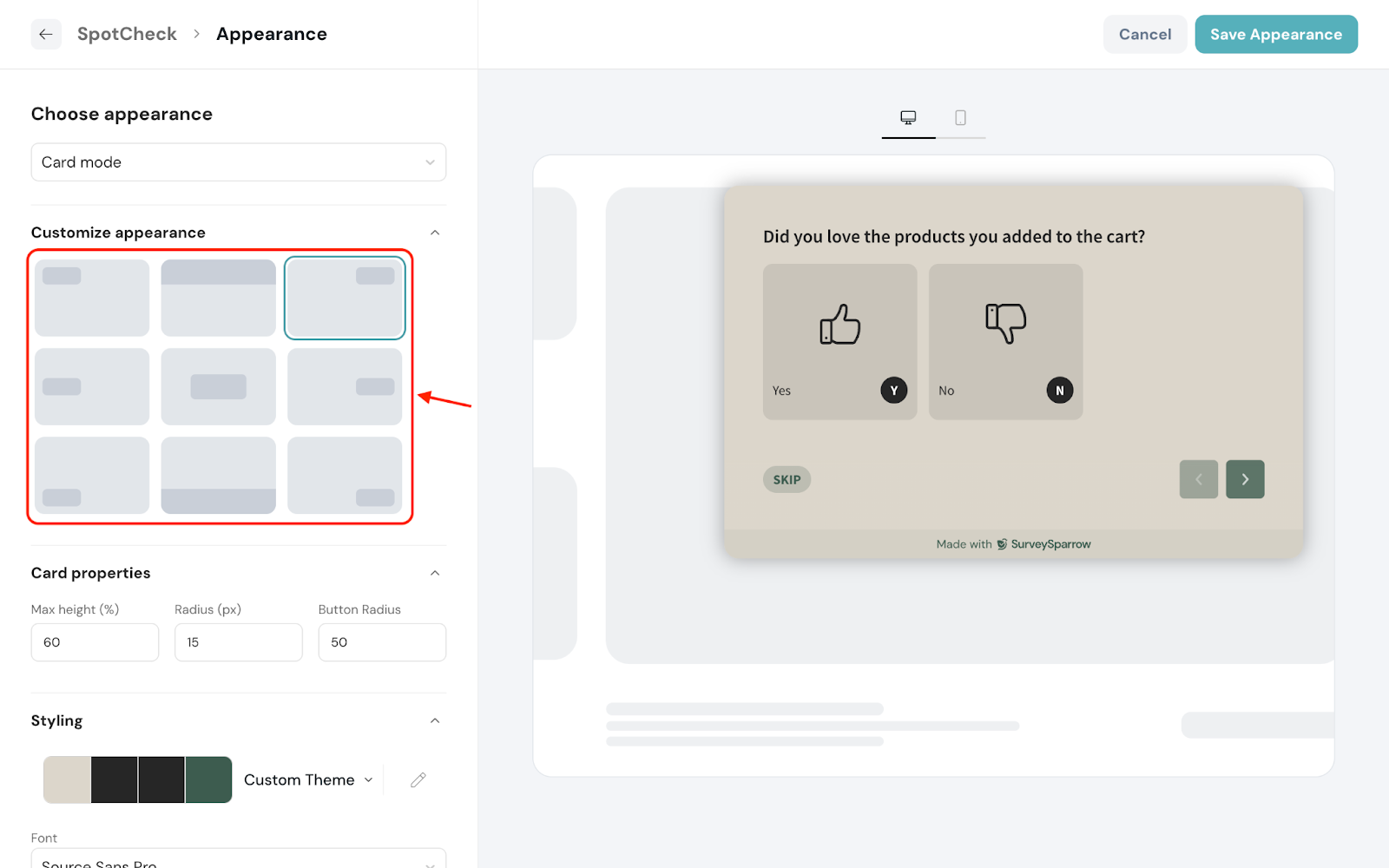 4. Style the SpotCheck to match your brand’s theme.