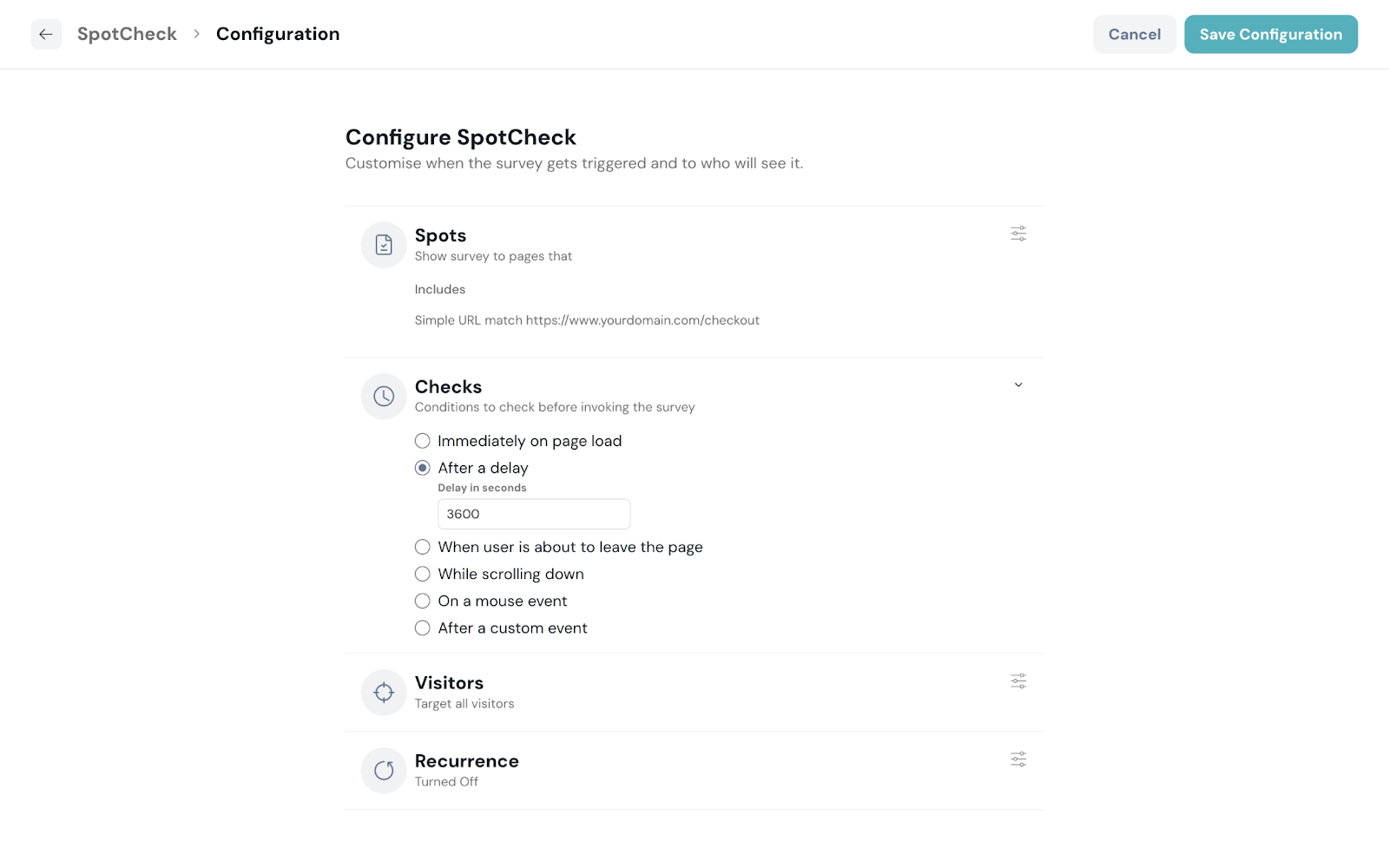 - After a delay: Choose the number of seconds after which the SpotCheck should be shown.
