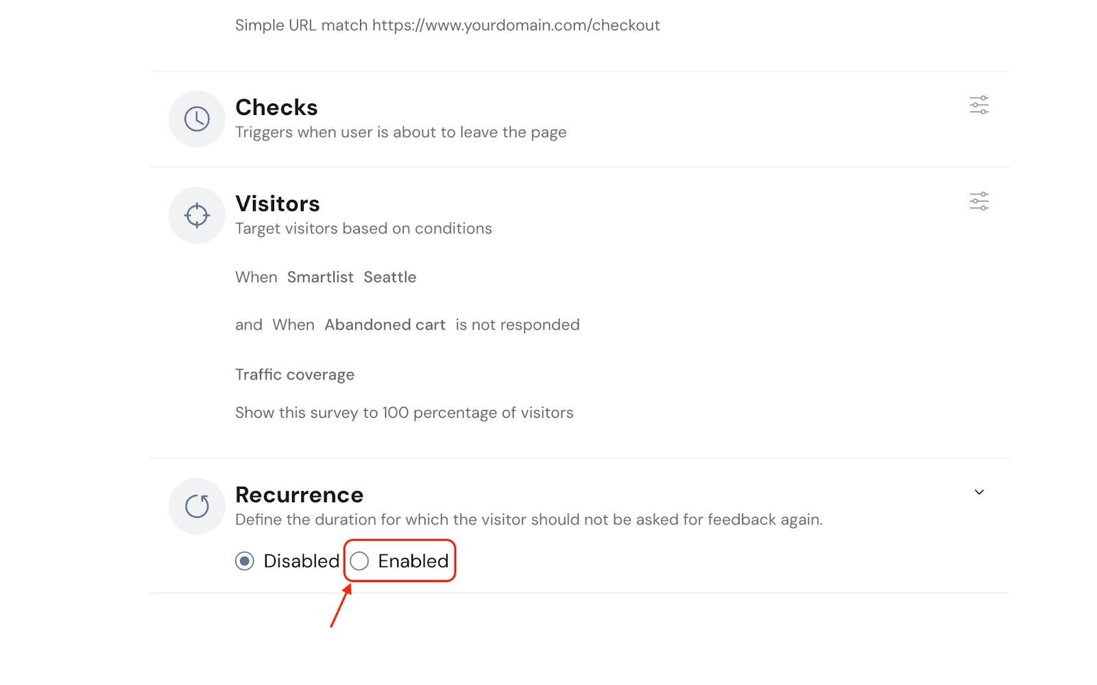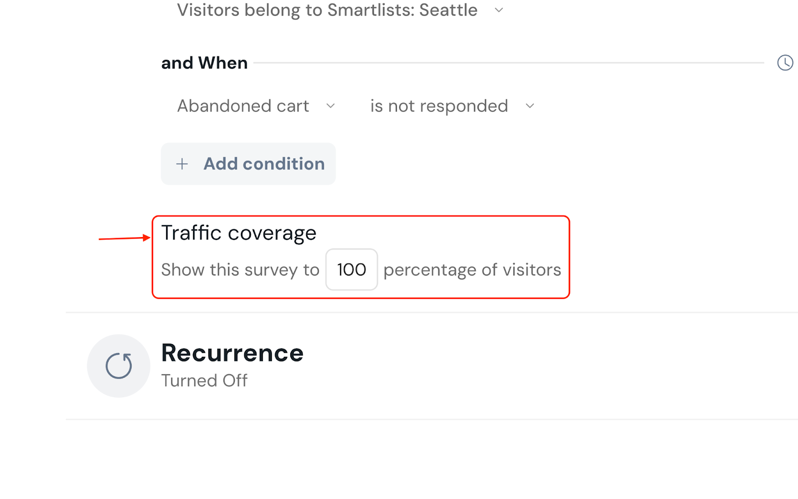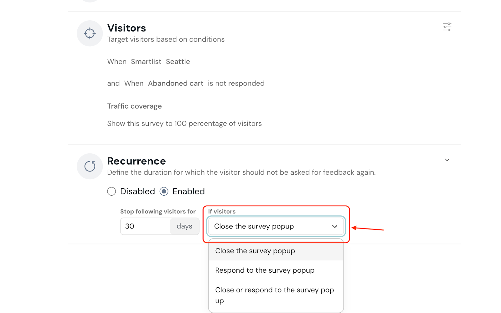 Additionally, you can select the recurrence based on the previous action of the visitor.