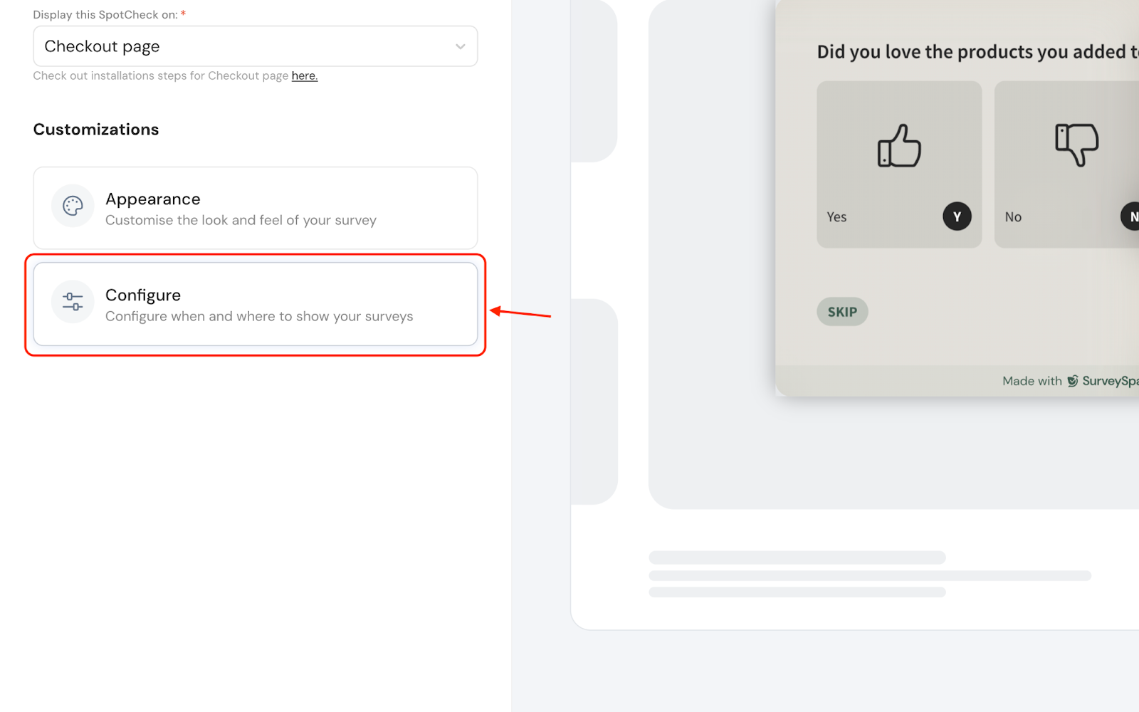 1. After customizing the SpotCheck, click Configure.