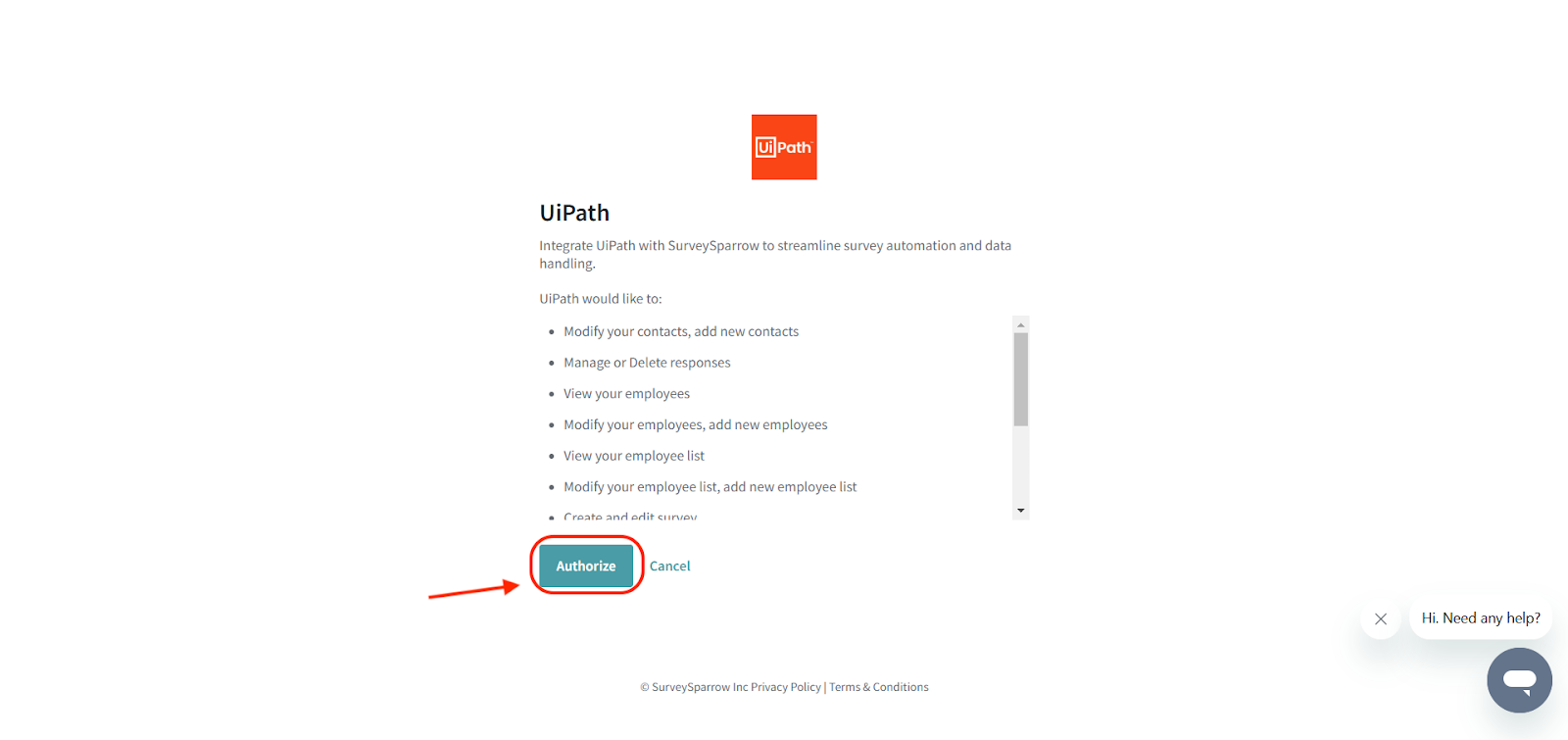 - You will be shown a list of permissions for UiPath. Click on Authorize.