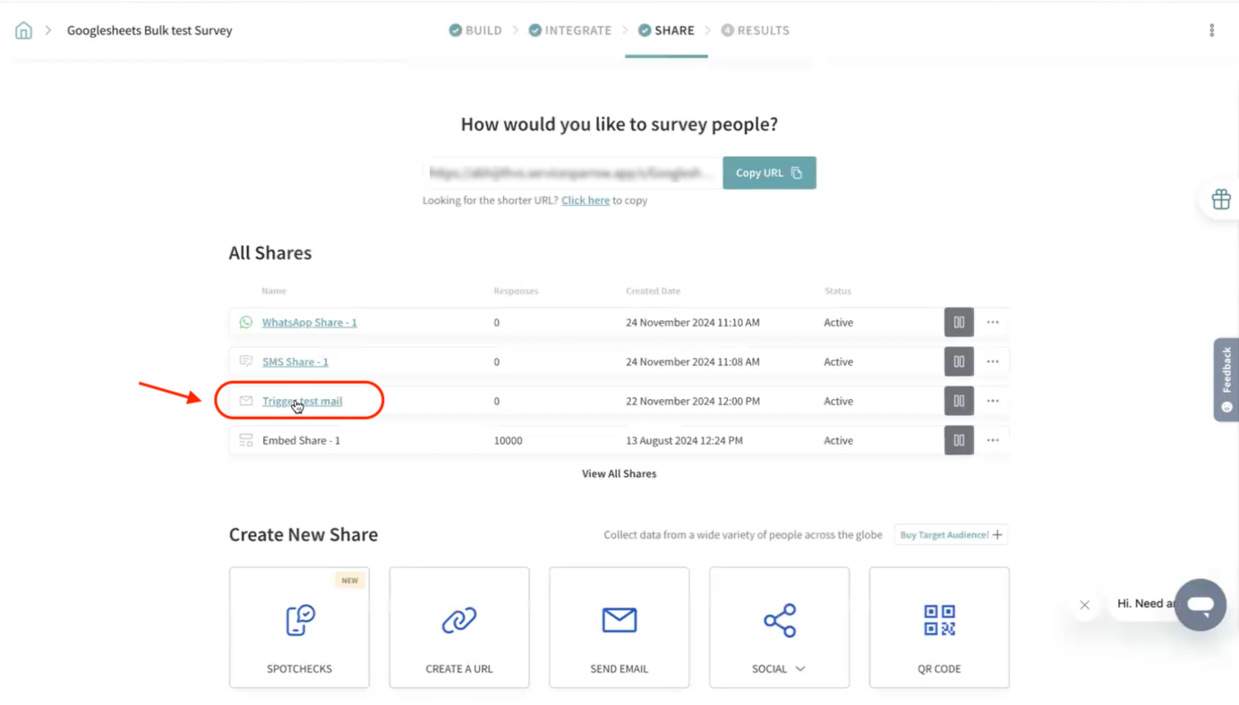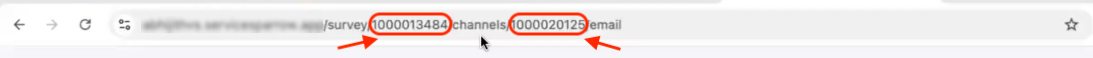 - To find the Survey and Channel ID, go to your SurveySparrow account. Open the survey that you want to send, then open the share channel that you want to use (in this case, email).