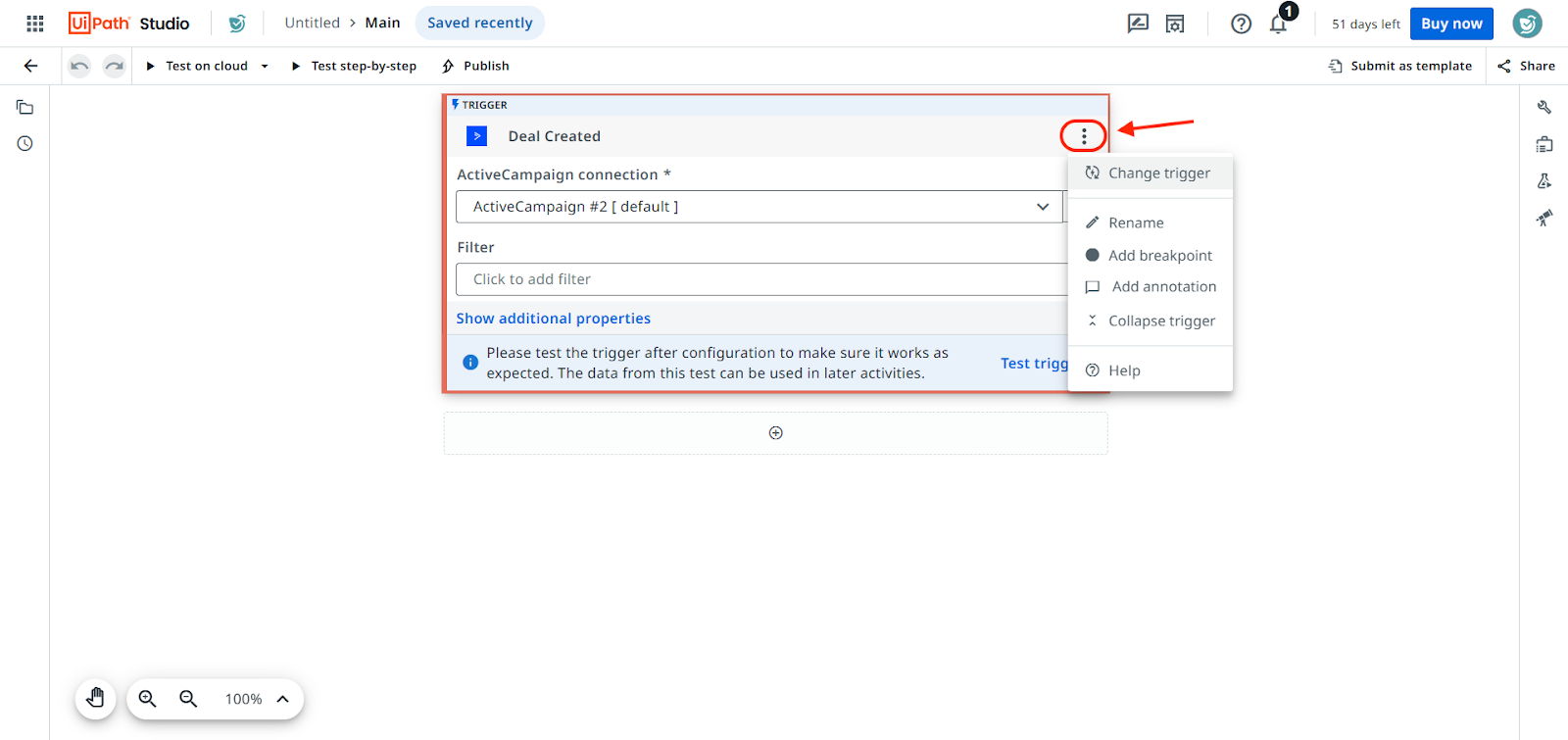 - If you would like to change the trigger or rename it, click the 3-dot icon.
