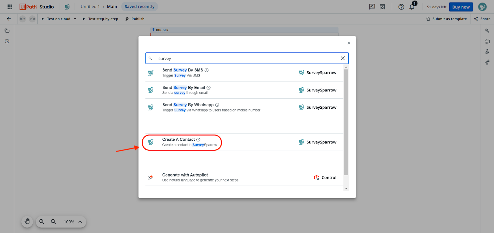 If you’re held back with tedious workflows involving multiple tools, UiPath’s API-driven automation can help immensely. UiPath’s Integration Service allows you to connect your third-party applications with SurveySparrow, so you can design event-based workflows.