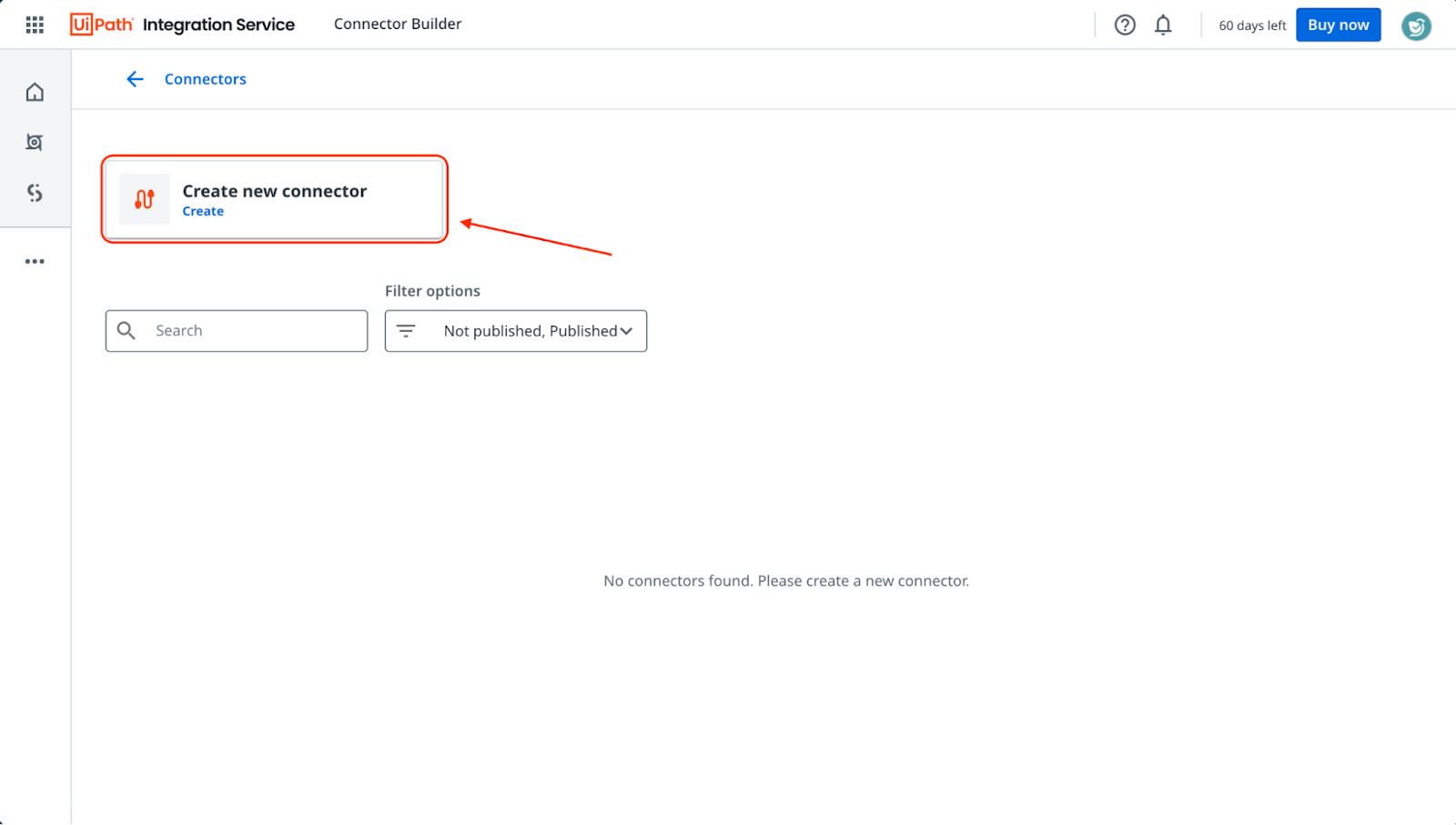 - Then click on Create new connector.